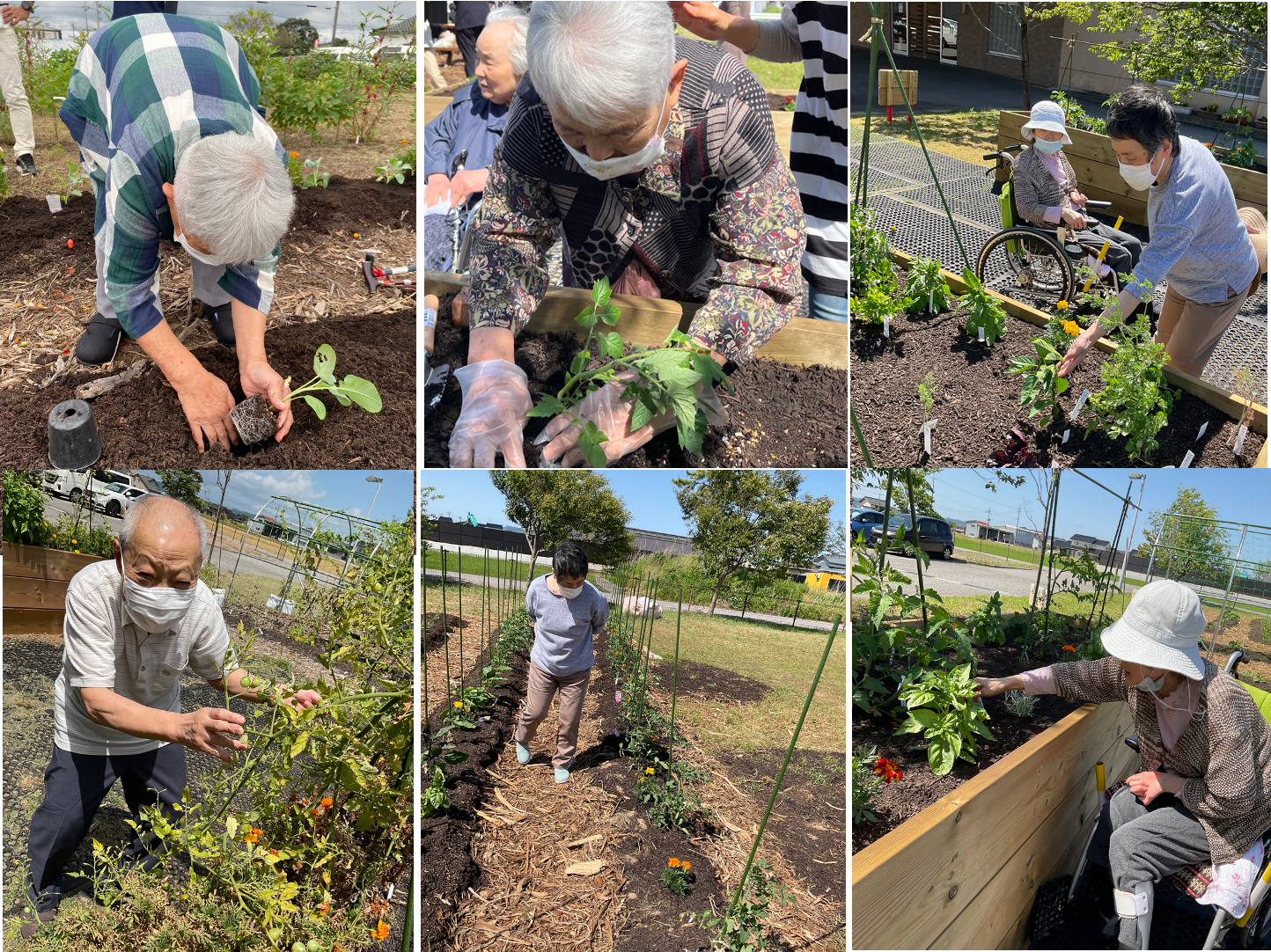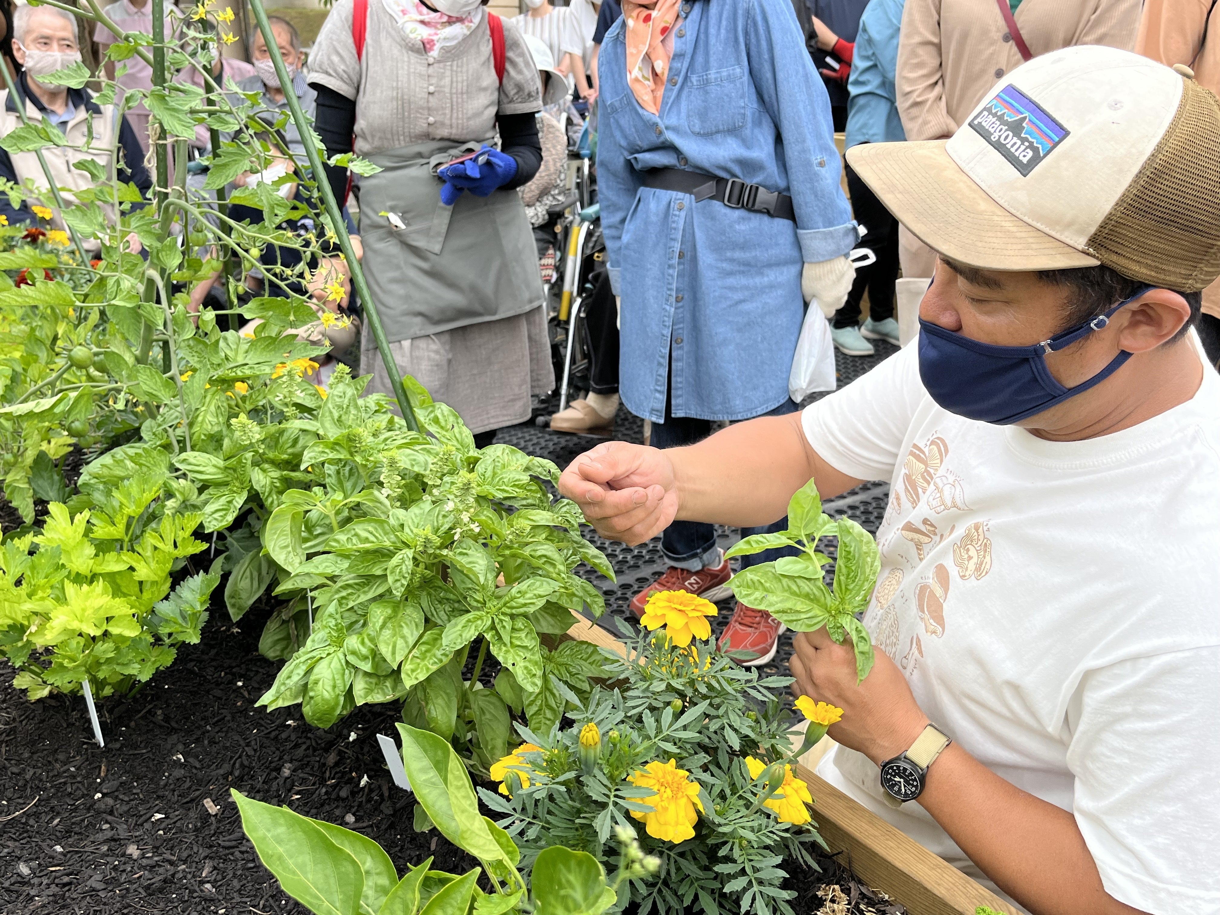 現在の2基のレイズドベッドは、当病院の患者さんやデイケアや、ホームのショートステイの利用者さんたちが、障がいのあるなしなどの様々な身体状態に関わらず、野菜を植え、触れたり、育てたり、収穫したりと、楽しんで「農」に関わっています。