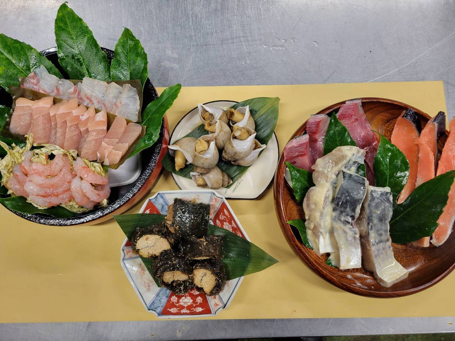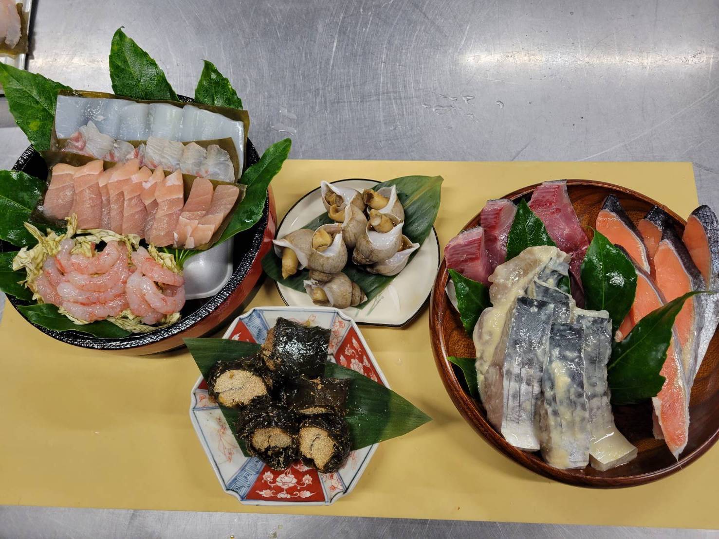 ・昆布締め(カジキ・白身(真鯛等)x2・イカ・甘エビ)