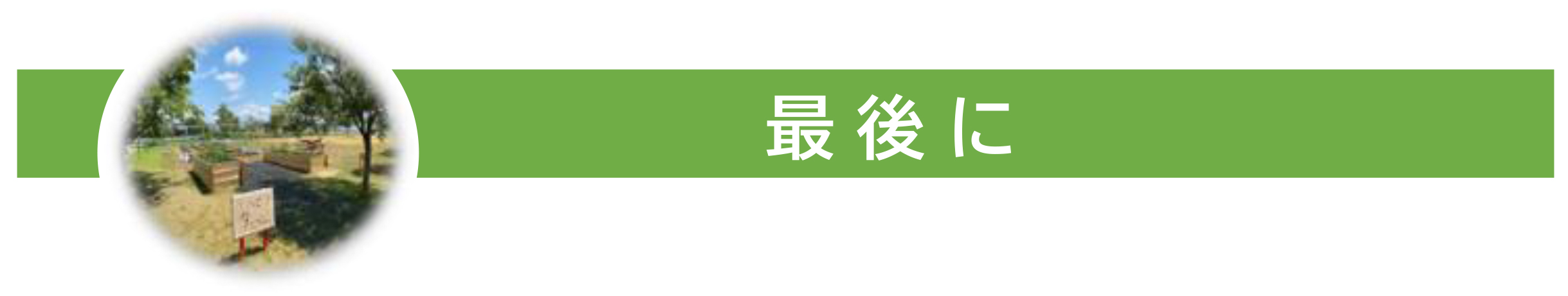子供たちや地域の人が自分たちのレイズドベッドを作り、季節ごとの野菜を育てて、ワークショップなどの際に、観察、収穫、加工、クッキングなどをして、「農」を通じて学び体験する場として、リハビリファームを拠点とし、地域の子供から高齢者、みんなが農学・農楽・農育(食育)体験を行うことができるようにしたいと思います。