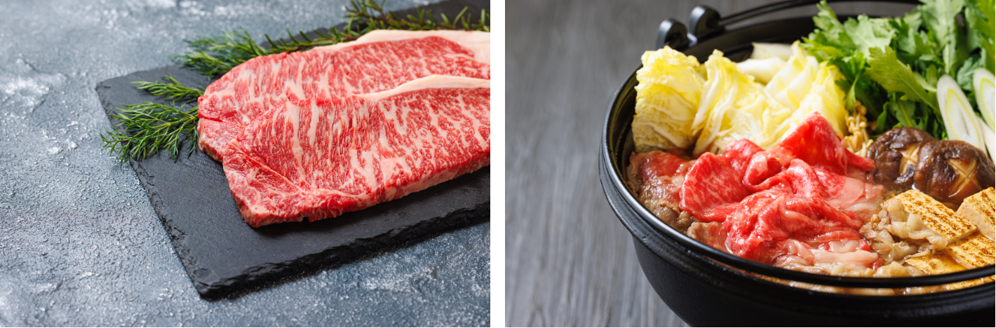 高岡は奈良や飛鳥と並ぶ、令和で話題になった万葉の街です。高岡市の山間にある山本牧場で飼育された黒毛交雑種の牛です。山本牧場こだわりの稲発酵のエサ、水源に近い天然水を与え、愛情たっぷりと旨味の豊富な牛に育てました。