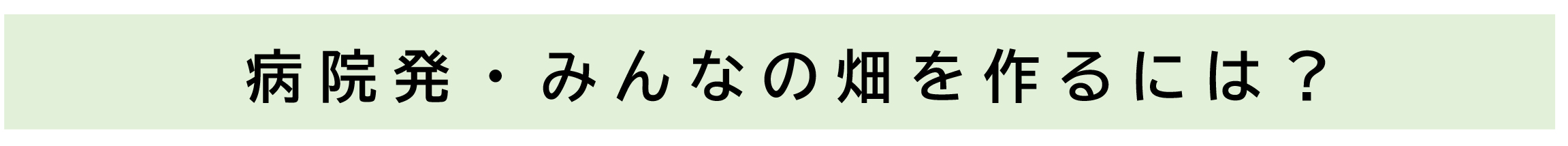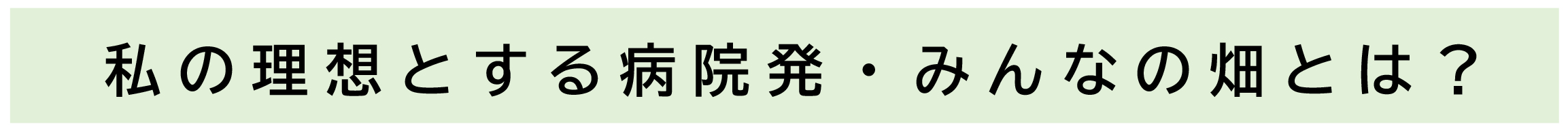 みんな(=患者さん・家族・職員・子ども・地域住民) が障がいのあるなしなど様々な身体状態に関わらず、楽しんで「農」に関われる「みんなの畑」