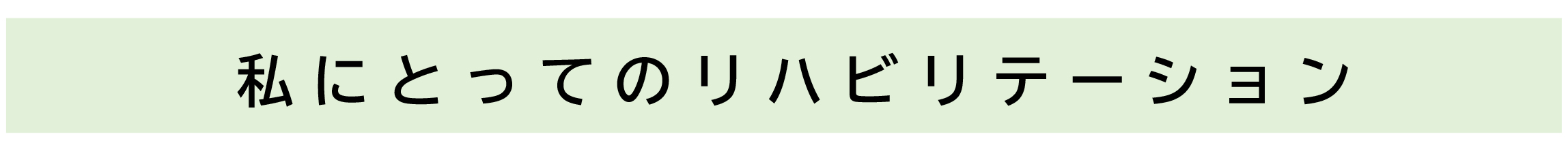 私にとってのリハビリテーションの定義は、「今ある力を最大限に活かして、その人らしく日常生活を過ごすこと」です。リハビリテーションは単なる機能回復ではなく、障がいに関わらず「人間らしく生きる権利の回復」や「自分らしく生きること」が重要とされています。