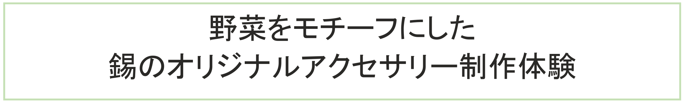 ※後半戦頑張れ追加リターンとして、大人気の「大寺幸八郎商店で、錫(すず)の野菜モチーフ・オリジナルアクセサリー製作体験」と「錫のアクセサリーブランド「kohachiro」のクラファン限定・野菜モチーフ・オリジナルアクセサリー」を設定しました!高岡市民の方も選択可能です。詳細は本文または返礼品の紹介でご確認ください。(2022/12/9追記)