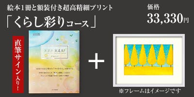 絵本『大丈夫 大丈夫!』にも掲載した原画をご希望のフレームに収めて、メッセージ付き直筆のサイン入り絵本とセットで、著者・武蔵野ルネさんが直接手渡しでお届けします。