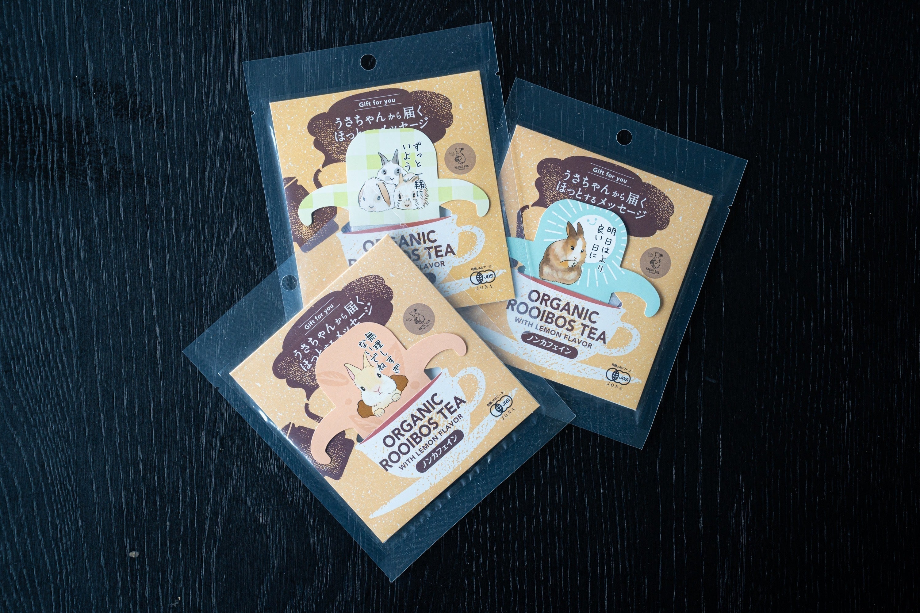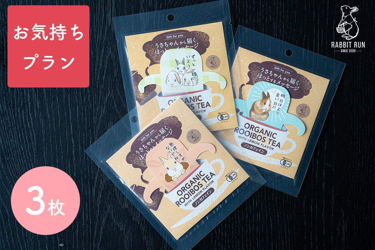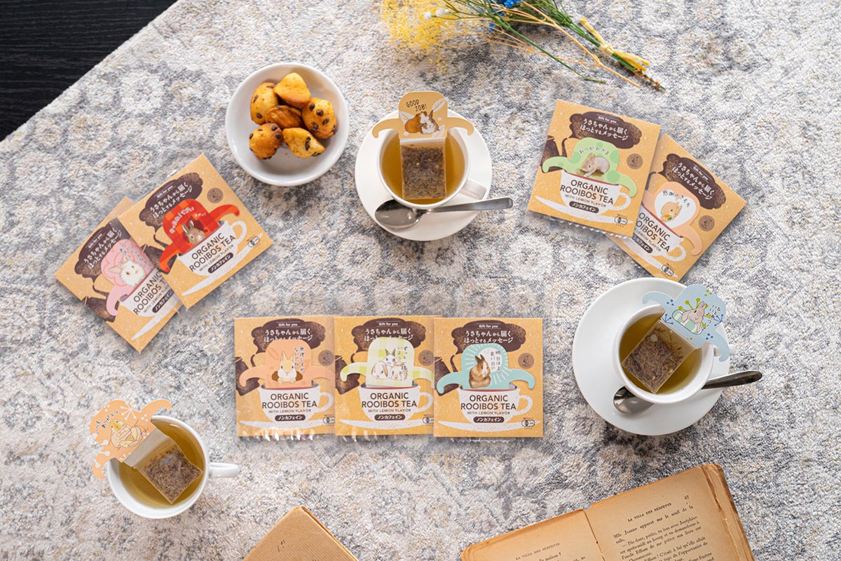 「らびっとらん」の新商品「うさちゃんから届くほっとするメッセージ」がデザインされたORGANIC ROOIBOS TEA(オーガニックルイボスティー)レモンフレーバー〜ノンカフェイン〜をご紹介します。