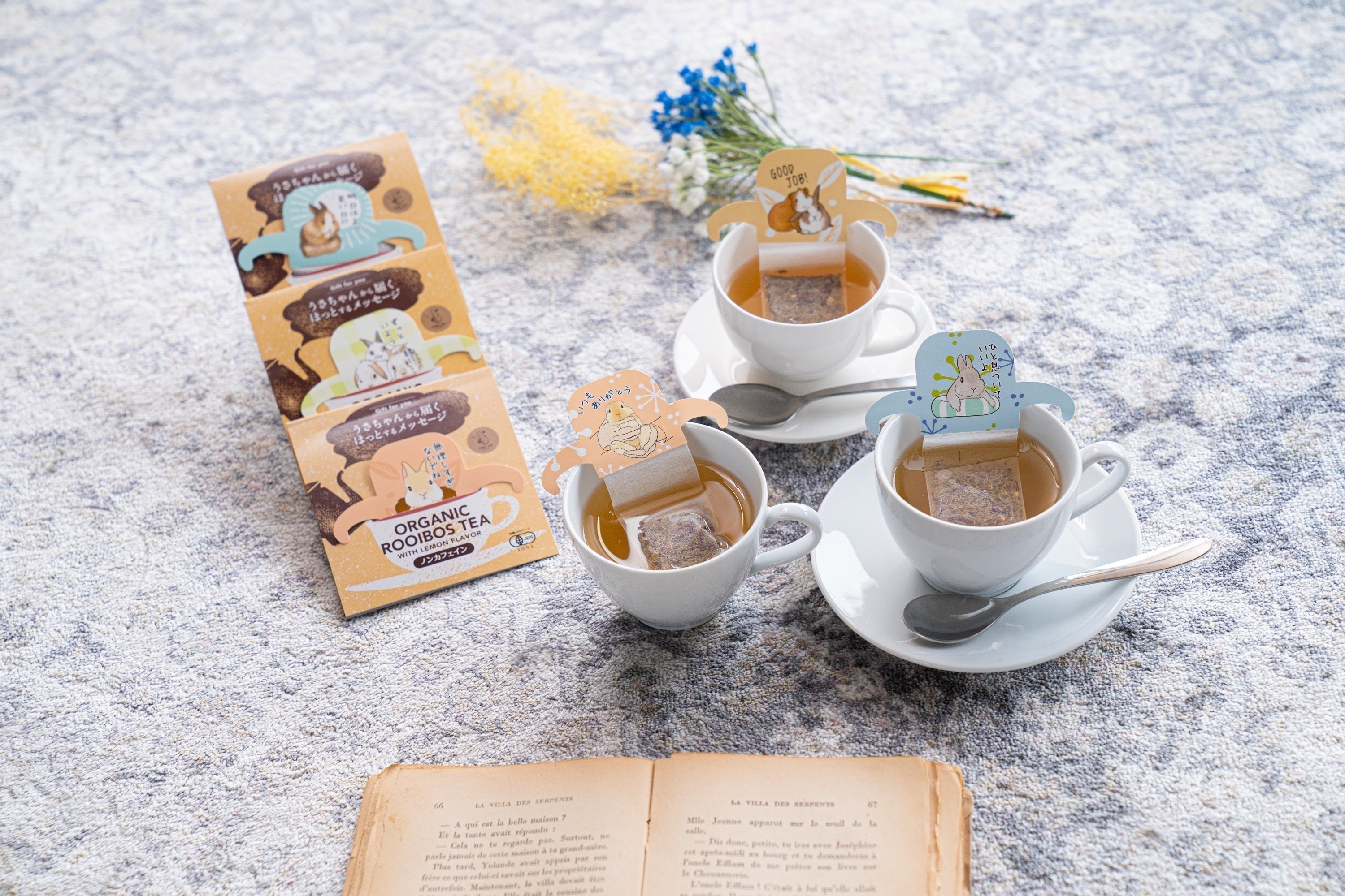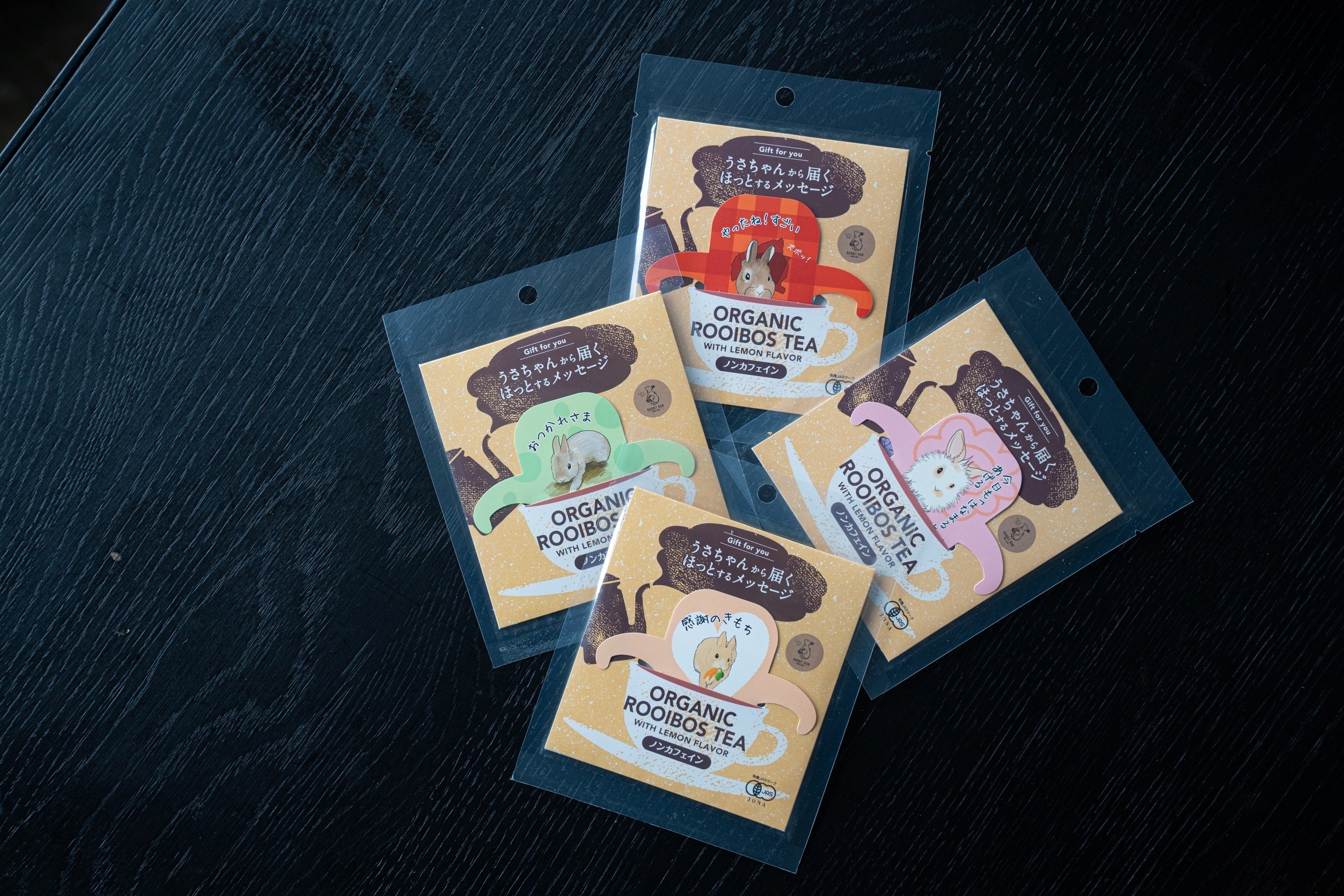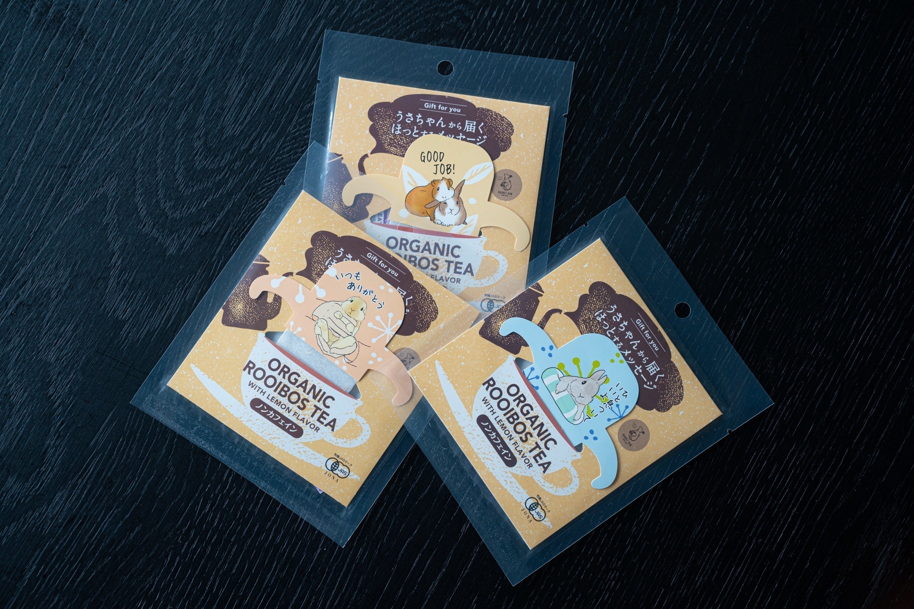 「らびっとらん」の新商品「うさちゃんから届くほっとするメッセージ」がデザインされたORGANIC ROOIBOS TEA(オーガニックルイボスティー)レモンフレーバー〜ノンカフェイン〜をご紹介します。