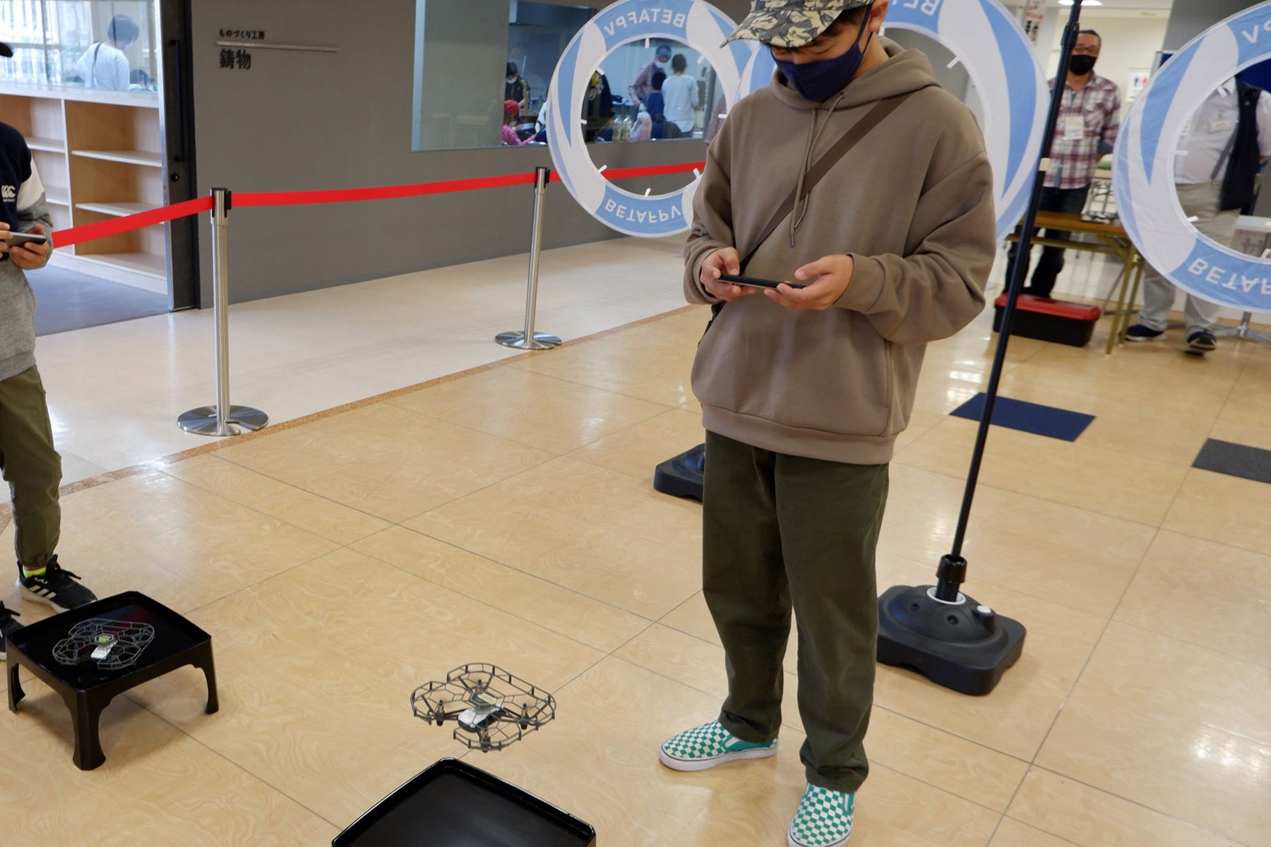 プレオープンには県外、県内各所からマイクロドローン愛好者がテストフライトに!