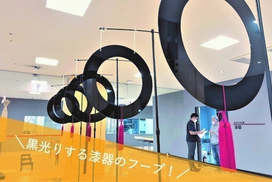 体験ドローンのコーナーの発着所には、漆器の御膳を使用しました!