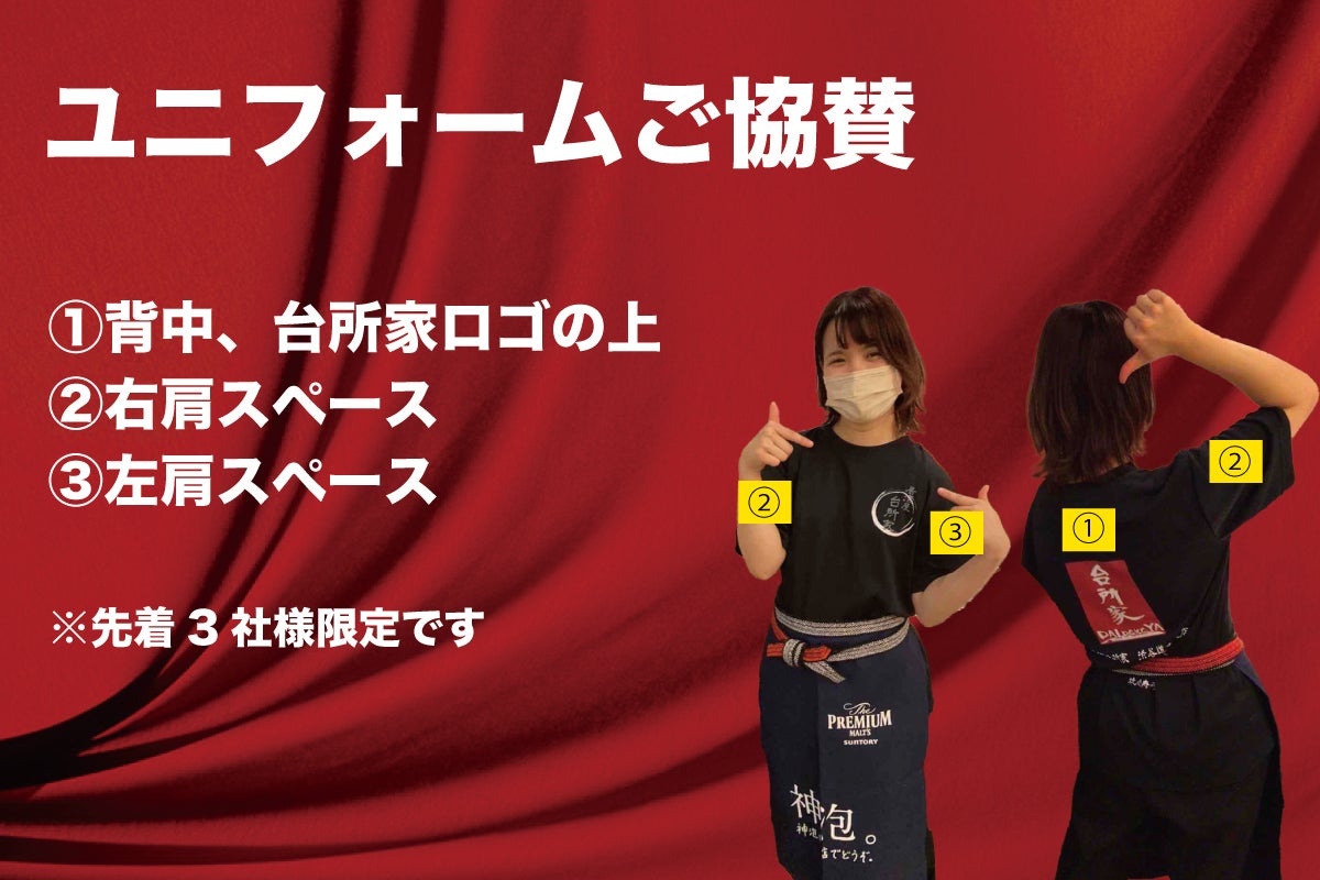 貴社の商品や会社のロゴマークをユニフォームに記載させていただきます。