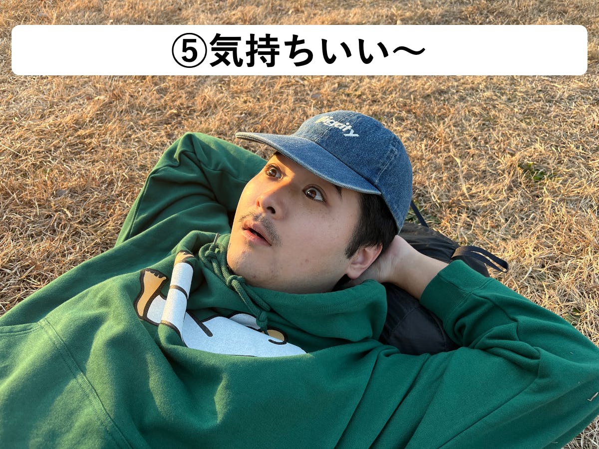 それは「芝生で寝ころがる快感」です。