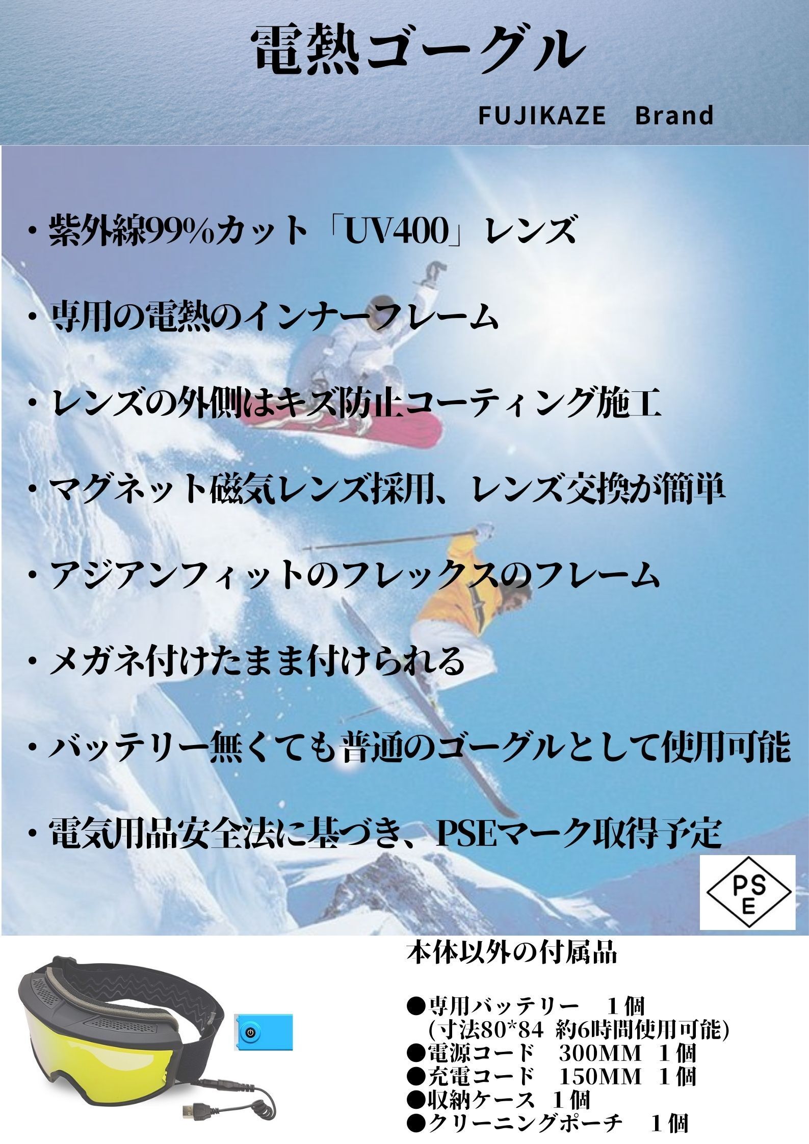 当社は今回のプロジェクトを通じて手頃の価格で電熱ゴーグルを提供し、一日のスノーボード/スキー等が曇らずに楽しめることを提供したいと考えております。今年のウィンタースポーツシーズンはFUJIKAZEが全力でサポートします!特に初心者の場合はゴーグルの選び方が分からないなど、安易に安い製品を選んだら、ゲレンデで曇った視線に困りますよね。初めてのゴーグルは是非当社FUJIKAZEの電熱ゴーグルにおすすめです。