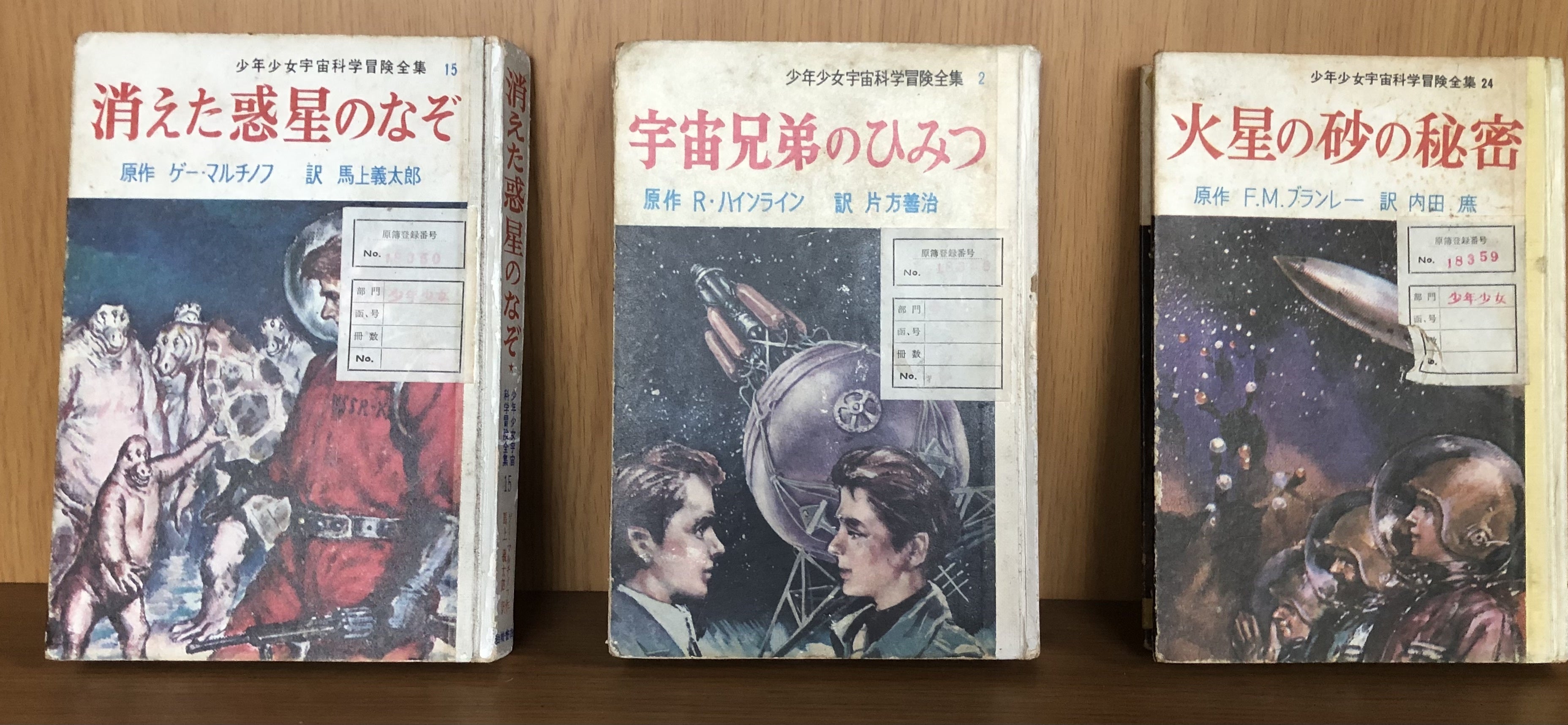 昭和35年から38年にかけ発行された少年向けSF全集。内容のワクワクはさる事ながら、なんと言っても絵が素敵!口絵もカラーで描かれており、見ているだけでも夢が膨らみます。残念なことに、再販されていないのは、科学技術の進歩により宇宙の「謎」や「秘密」が、解明されてしまったから?せめて小説の中では、謎と秘密に満ちた宇宙を冒険したいものです。