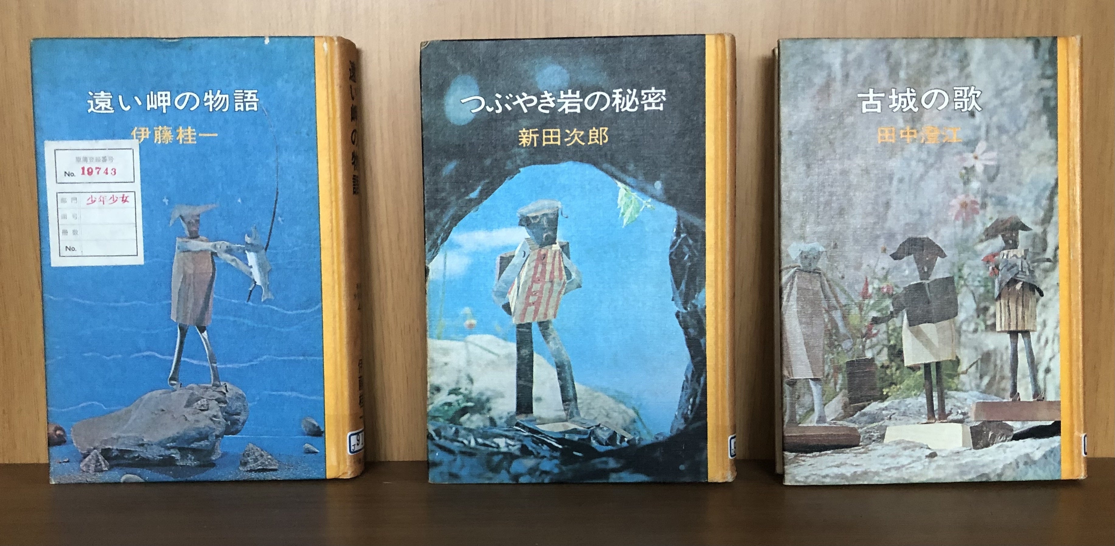 新潮社が1971年から1973年にかけて発行した児童向けのシリーズ。装丁の素朴な人形は画家の香月泰男が身の回りの針金や空き缶を再利用して製作したもの。写真の「つぶやき岩の秘密」は新田次郎が手がけた数少ない児童文学。児童文学と言っても、内容はけっして甘くない冒険探偵小説。N H Kでドラマ化されたので、覚えている方も多いのでは。50年ほど前の本ですが、今読んでも、引き込まれるシリーズです。