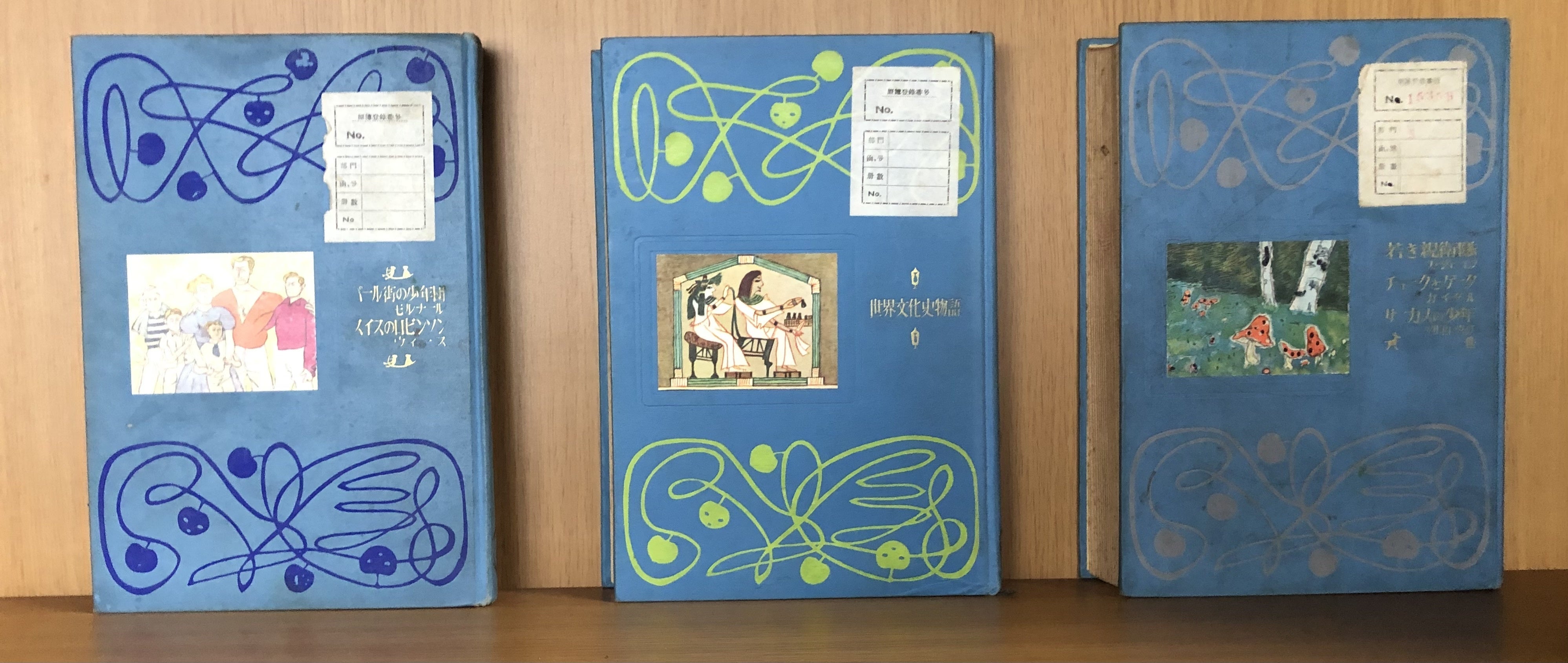 1953年(昭和28年)から3年間にわたって出版された少年少女文学全集。イギリス編、フランス編など国ごとに物語が所収。装丁は、大正から昭和にかけて子どもの本の世界で活躍した画家の初山滋。見返しのデザインもその巻のイメージにあわせ1冊ずつ異なるというこだわりよう。内容はもちろんのこと、眺めているだけでも楽しくなる全集です。