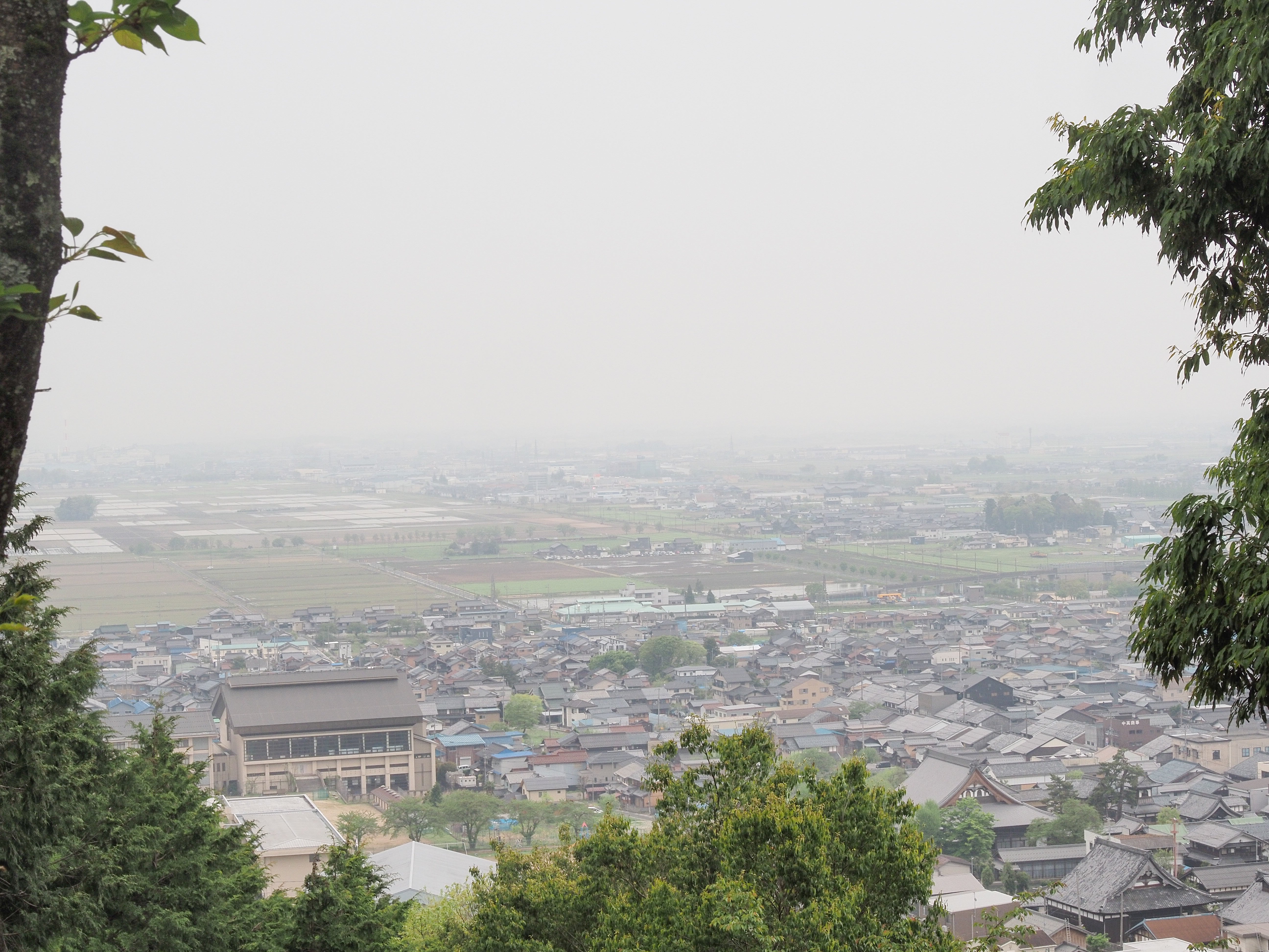 近くの田上山からの眺め。手前は木之本・奥にはお隣の高月町。霞んで隠れていますが琵琶湖も望めます。
