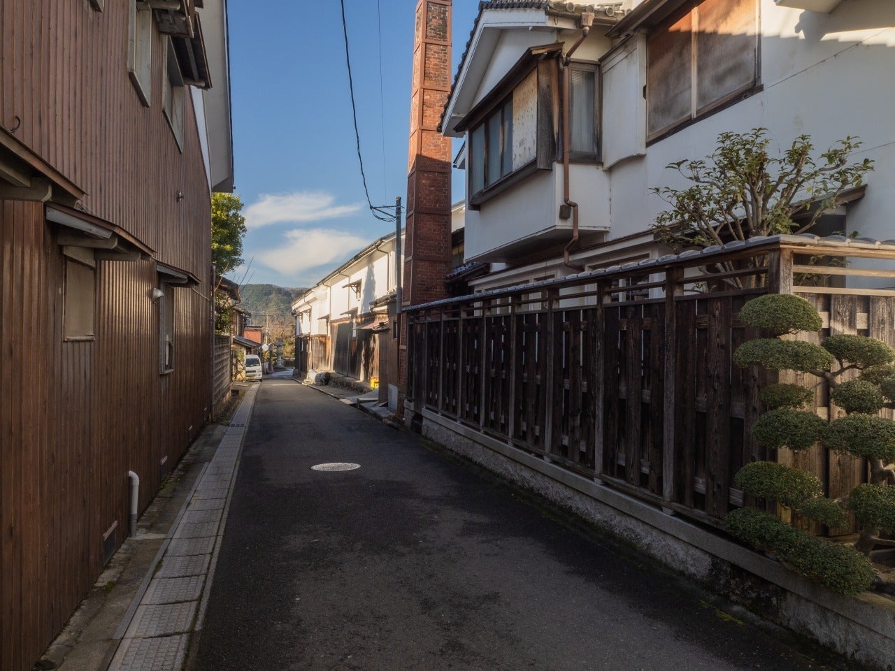 そして一歩細い路地へ足を進めると、そこからは徐々に生活の息遣いが感じ取れる風景に変わって行きます。鰻の寝床のように間口が狭く奥まった家並みが続いていて、歩いていると自然と空を仰ぐように目線が移ります。