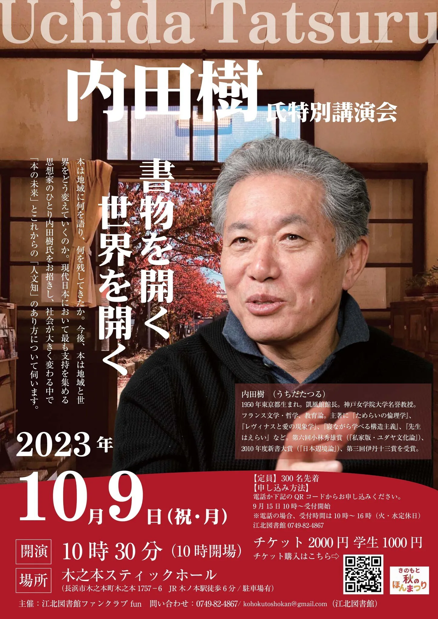 〈内田樹氏 講演会〉チケットの申し込みはじまりました。