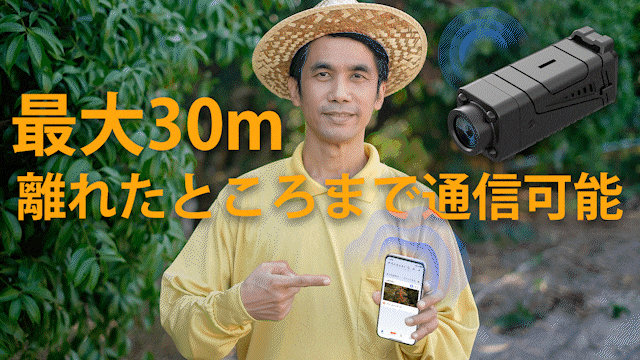 AP(アクセスポイント)は、カメラ本体から電波を出すので、ネット環境がなくてもスマホから映像確認や設定、連続録画が可能!「X-FANG」本体から最大30m離れたところまで通信ができます。