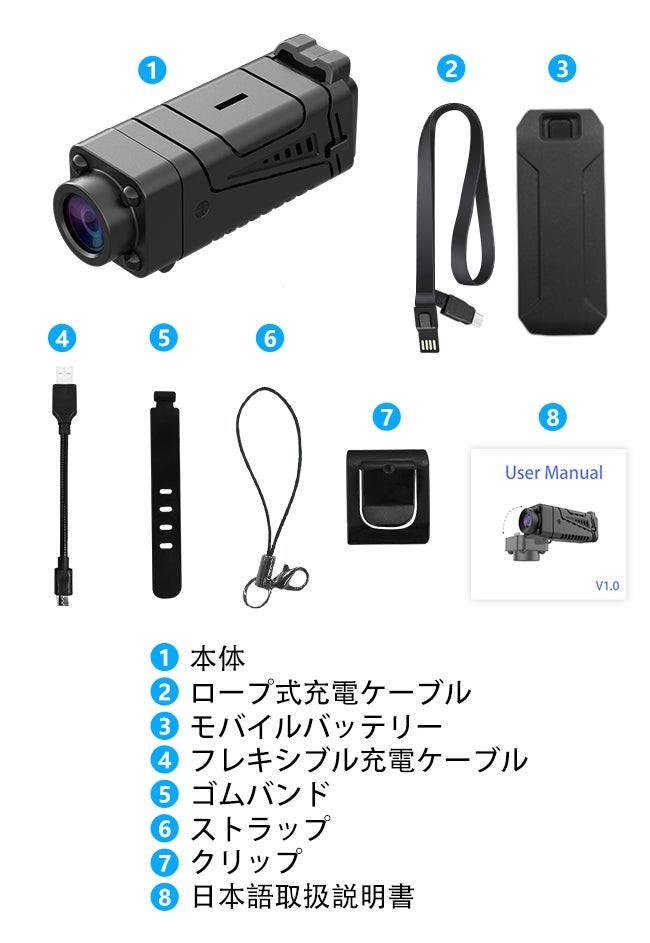 また、約1.5時間でフル充電になり、最大2時間の連続使用が可能です。コンセントのない場所でも手軽に録画でき、万が一の場合には携帯電話に充電することもできます。