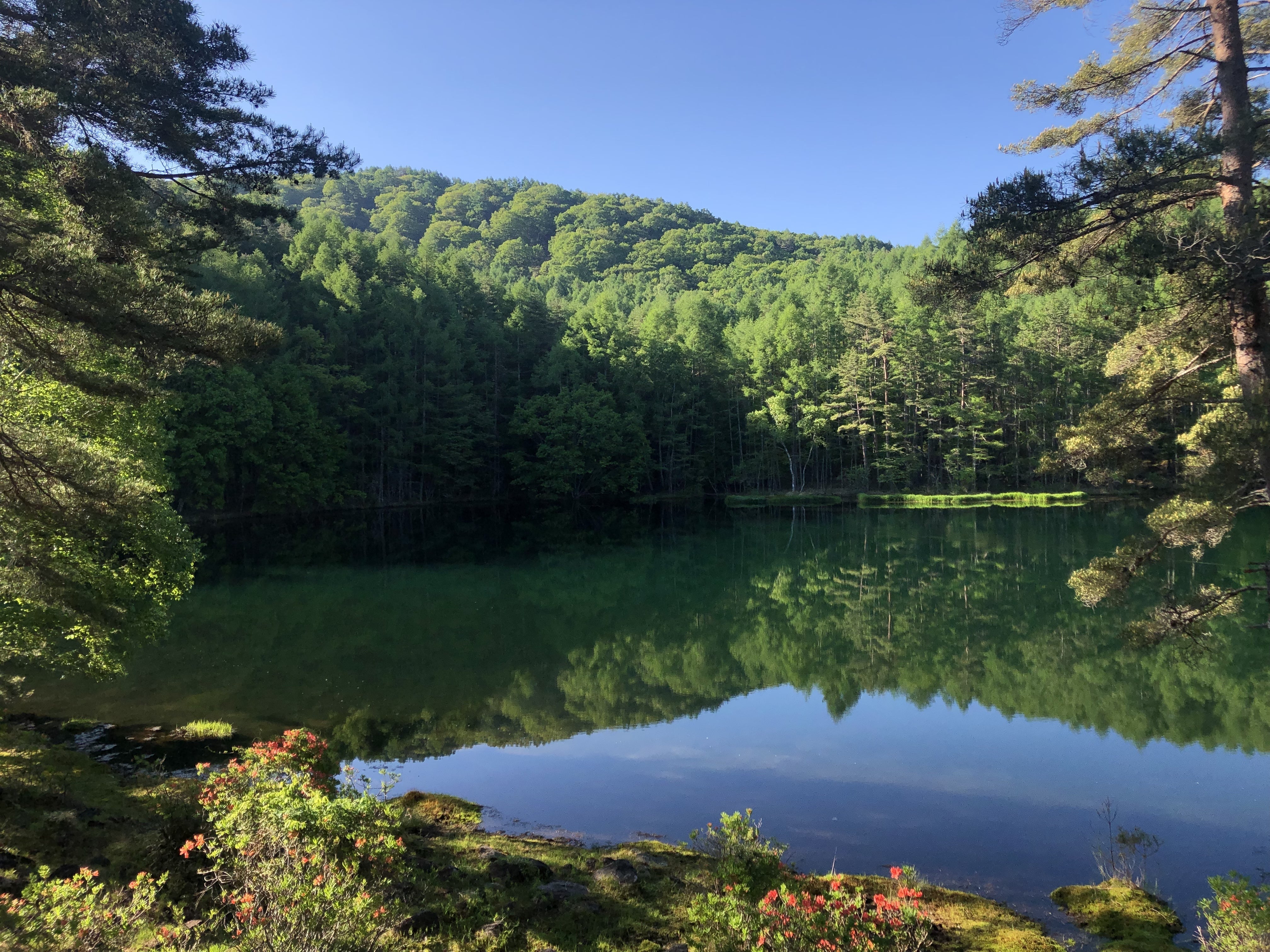 この池の水面に、四季折々を綺麗に映し出しますが、様々な条件が整わないと、なかなかその光景に出逢えないとのことです。