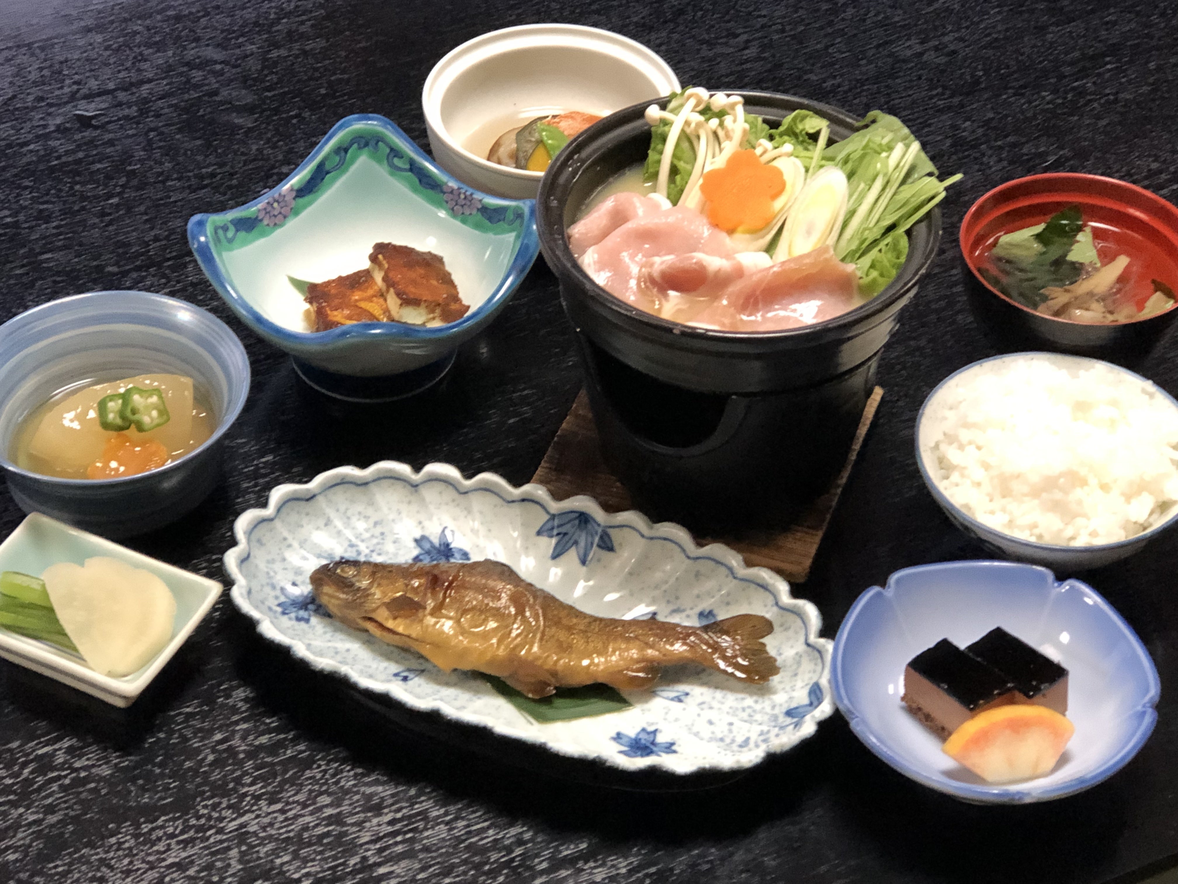 1泊2食付き、健康にこだわり、旬の地元の食材にこだわったお食事をお楽しみください。