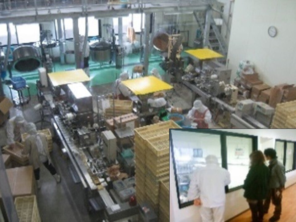 弊社の工場は2階の通路がガラス張りになっており、工場内部を全てご覧いただけるようになっています。