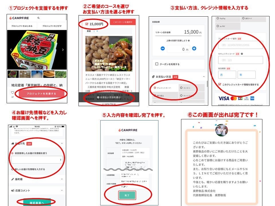 続きまして、お問い合わせいただくことが多いCAMPFIRE(キャンプファイヤー)でご支援いただく方法です。ご参考になればと思います。