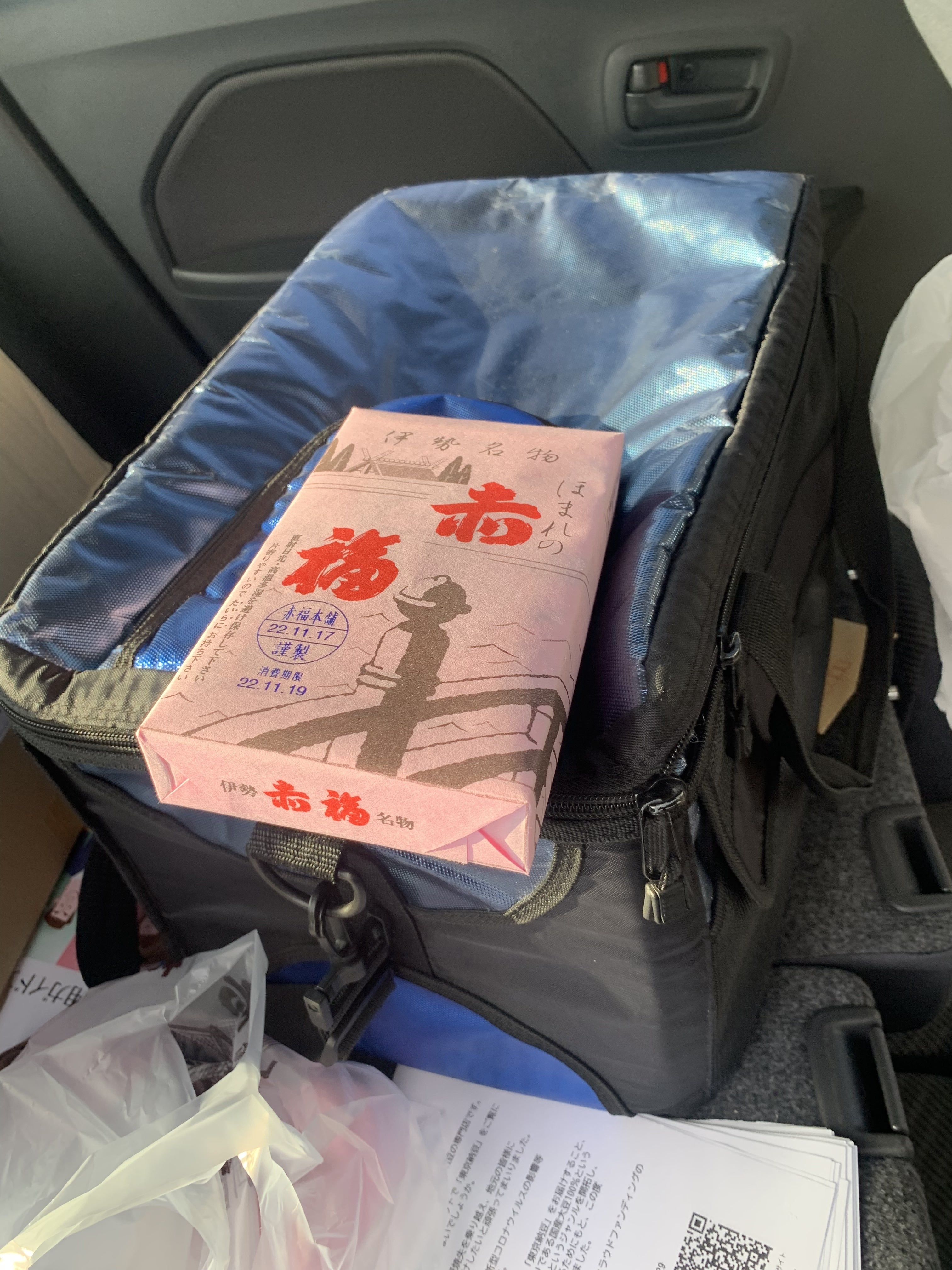 お客様に国産クラフト納豆の商品説明時間を頂けましたので、朝の作業を済ませて関西に向かっております。工場を7:30出発し、今、途中、亀山にてお客様へのお土産、今回は赤福を手に入れてから、国産クラフト納豆の規格書類を整理して再出発です。国産クラフト納豆のバーコードも決まりました。