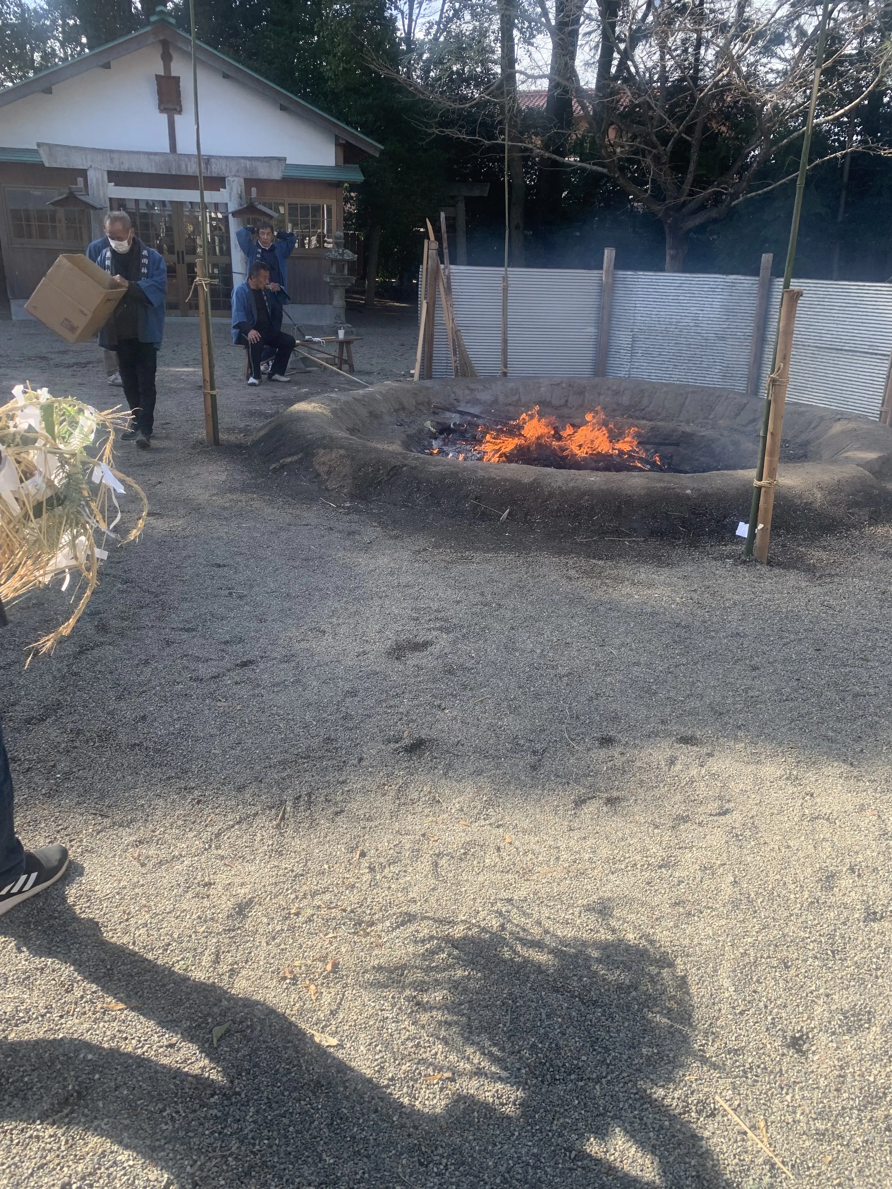 朝の発酵室整理のあと、花岡神社へ、どんど焼きに、しめ縄やお札を納めにいきました。