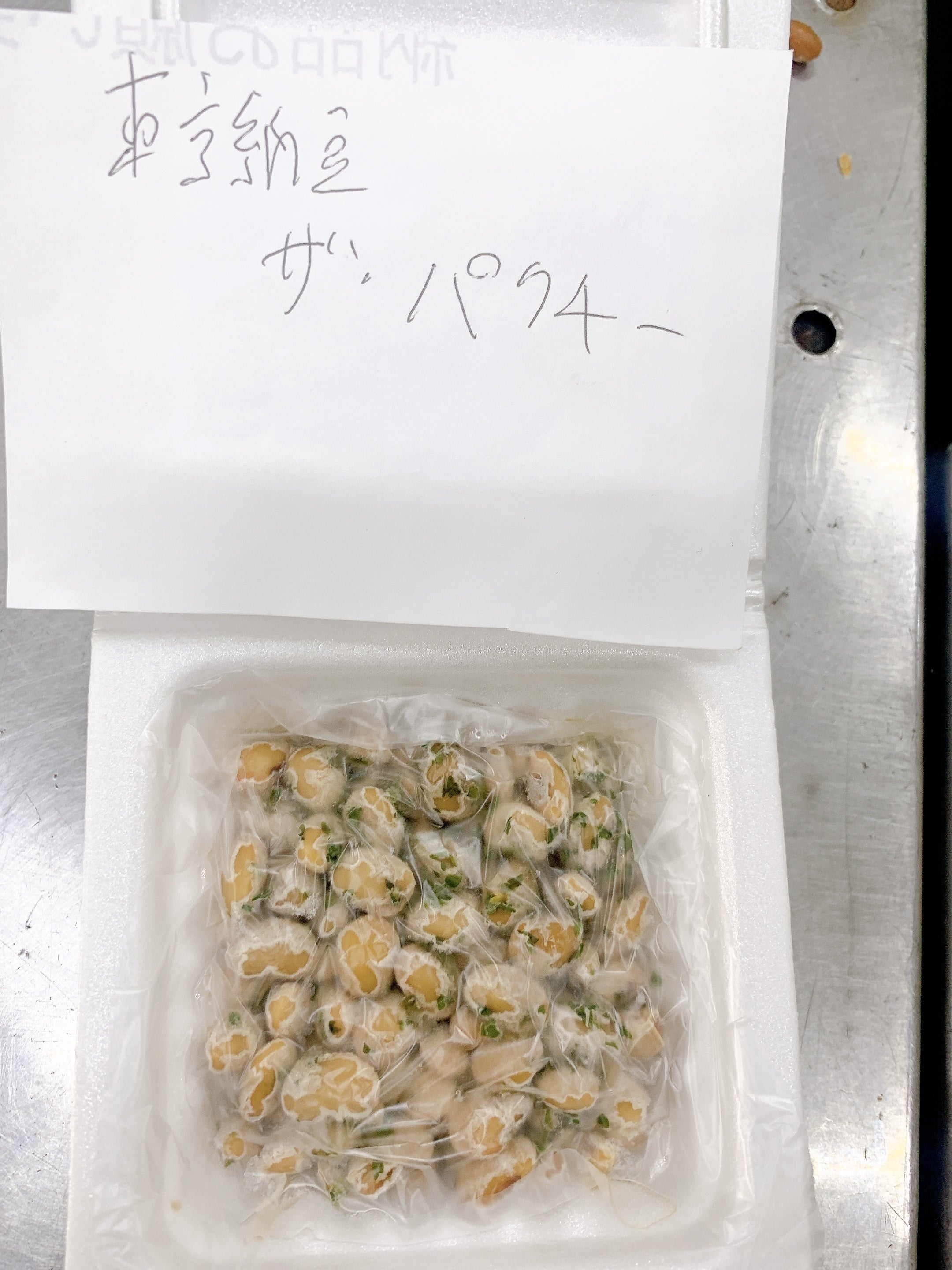 皆様いつもご支援をいただきまして誠にありがとうございます。https://camp-fire.jp/projects/view/640124第ニ弾リターンの「試作品コース」に入ります試作品です。今回は、「東京納豆ザ・パクチー」です。不思議な味で?!何かバターみたいな香りがします。ジンギスカンタレで食べたら、ネバるので納豆なのだけれど、納豆というよりお惣菜という感覚です。美味しいです。パクチーの初心者向けみたいになりましたので、パクチー増量したほうが良さそうです。第二弾ページお願い申し上げます。#第二弾 #第2弾 #クラフト納豆 #納豆 #東京納豆 #納豆好きと繋がりたい #納豆好きとつながりたい #納豆レシピ #納豆ごはん #朝ごはん #国産大豆 #FFC #テーマパーク #岩戸の塩 #FFCウォーター #パクチー納豆