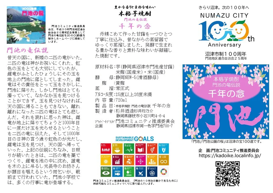 沼津市制100周年・門池地区連合自治会25周年記念事業-本格芋焼酎「門池の竜伝説-千年の念」