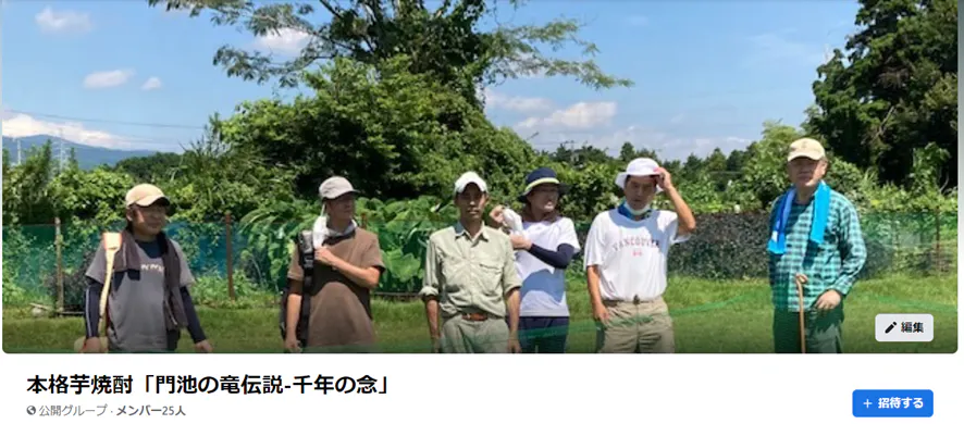 クラウドファンディング支援者としてフェイスブック・グループ本格芋焼酎「門池の竜伝説-千年の念」へ招待します。