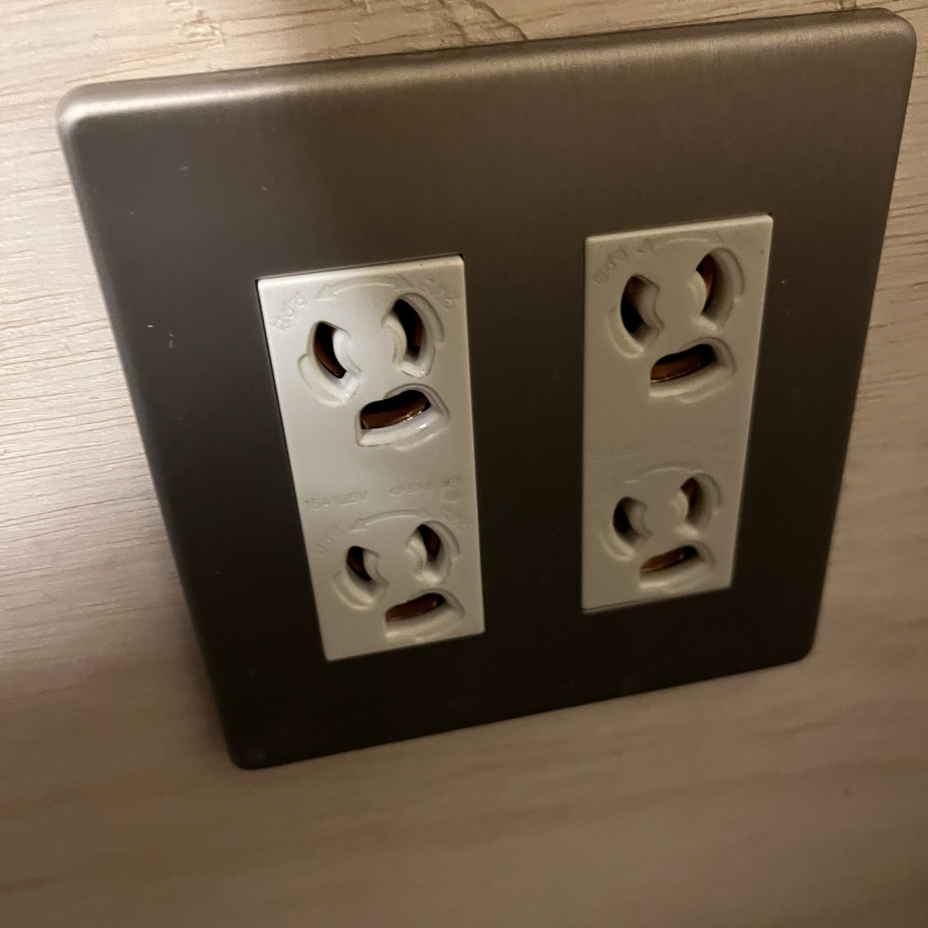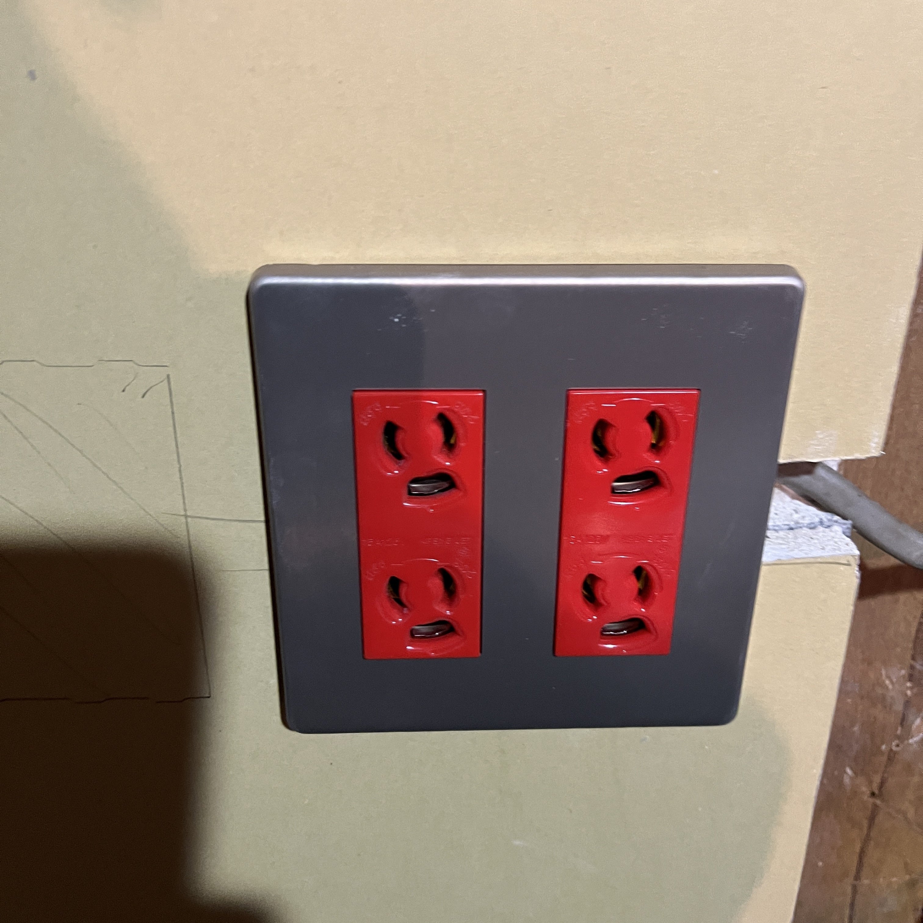 ばっちり、スタジオらしい金属プレート+抜け止め機構のついたコンセントがつきました。これ見るだけで満足感で顔がほころびます。。