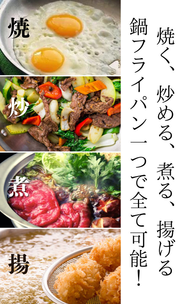 ■浅型鍋とフライパンの二刀流で多彩調理(煮/焼/炒/揚)