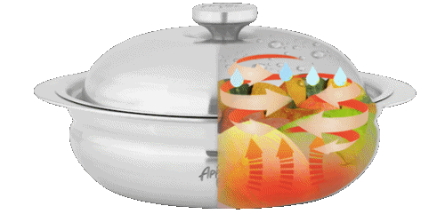 アップル形状により鍋の内側で気流を生み下→上→下へと包み込むように食材の旨味を閉じ込めます。