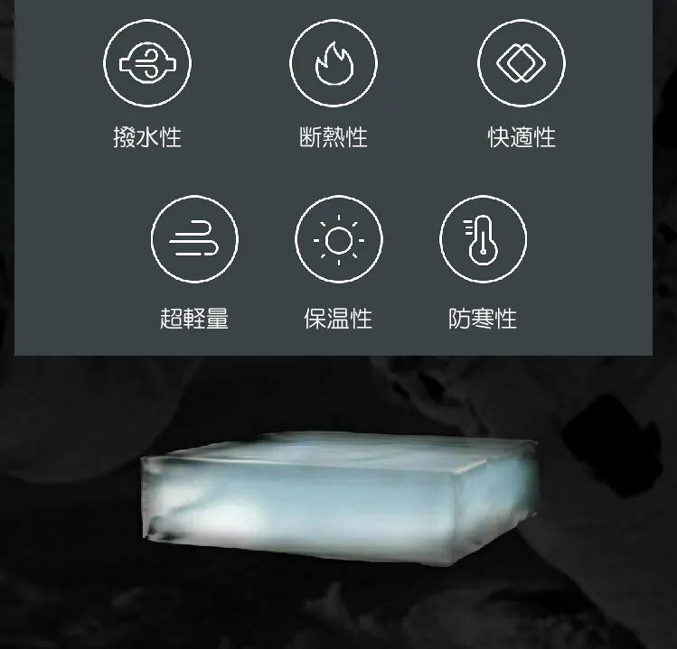 エアロゲル中綿はとても軽く、ダウンやフェザーよりもふわふわしています。