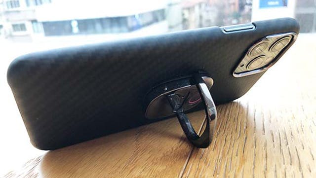 落下防止に加え、机の上に立てかけスマホスタンドにもなるため一石二鳥です。