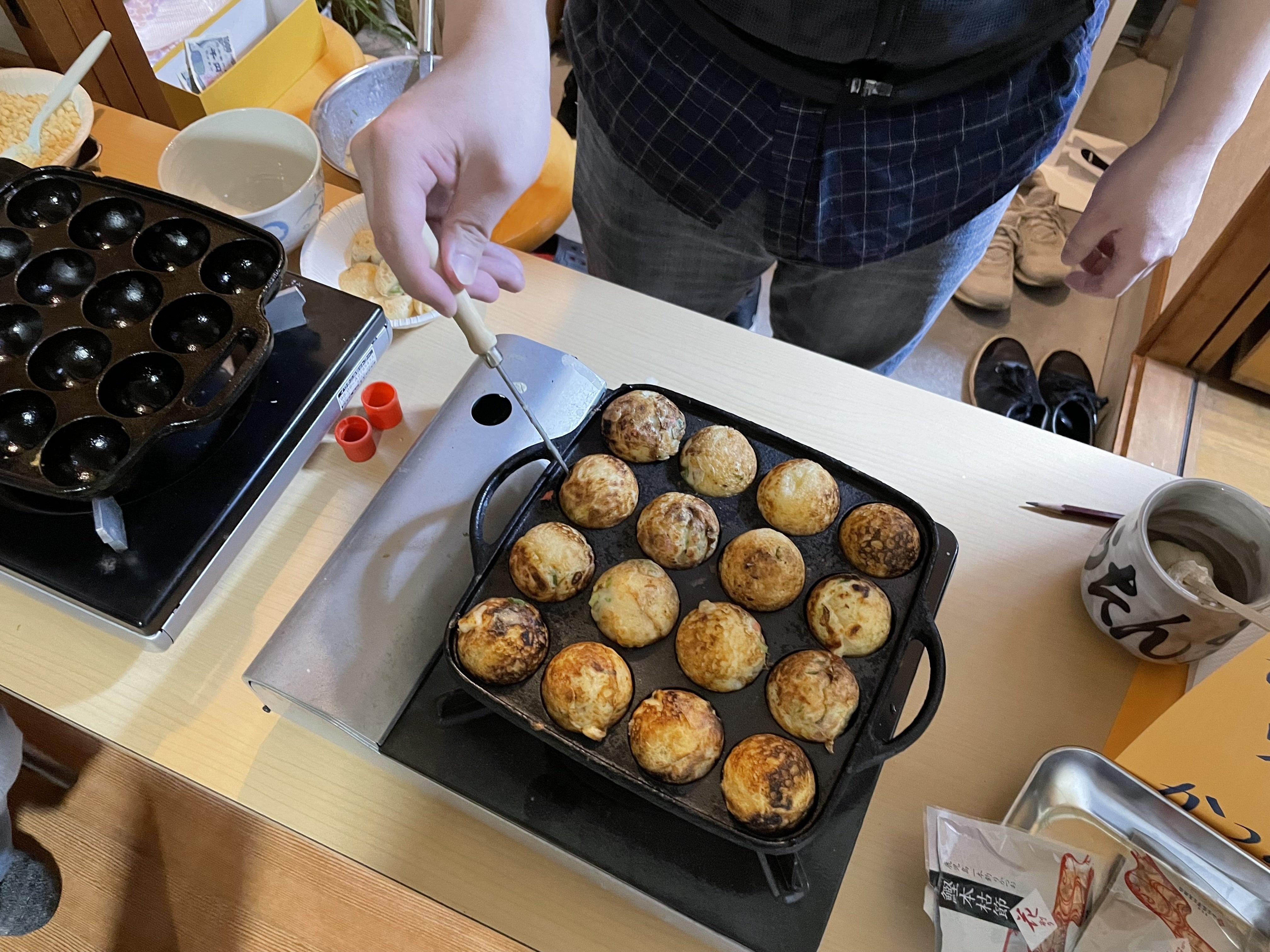 一方で、現役メンバーでたこ焼き焼いたり、イカ焼き焼いたり。