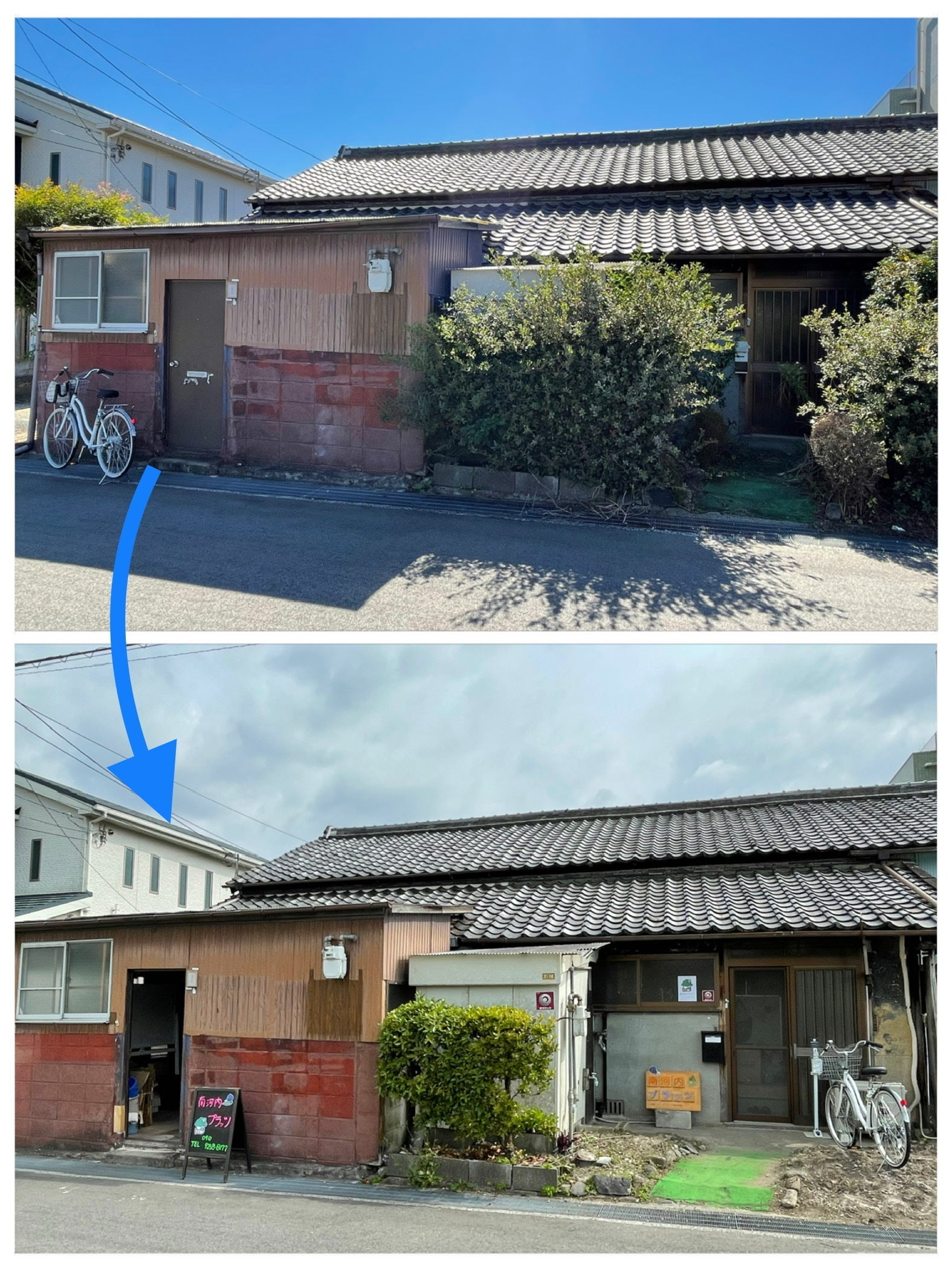 伸び放題で危なかった植木が、さっぱり!!看板を出しても、ちゃんと見えるようになりました。