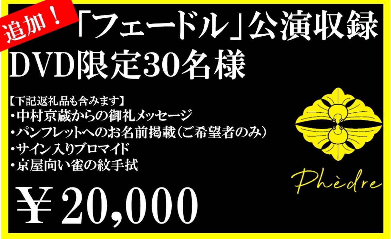 いつも大変お世話になっております。既に、20名様のご支援を頂いております公演収録DVDのリターンでございますが、この度、追加をさせて頂くことが決定いたしました!!何卒お力添えのほど、よろしくお願い申し上げます。