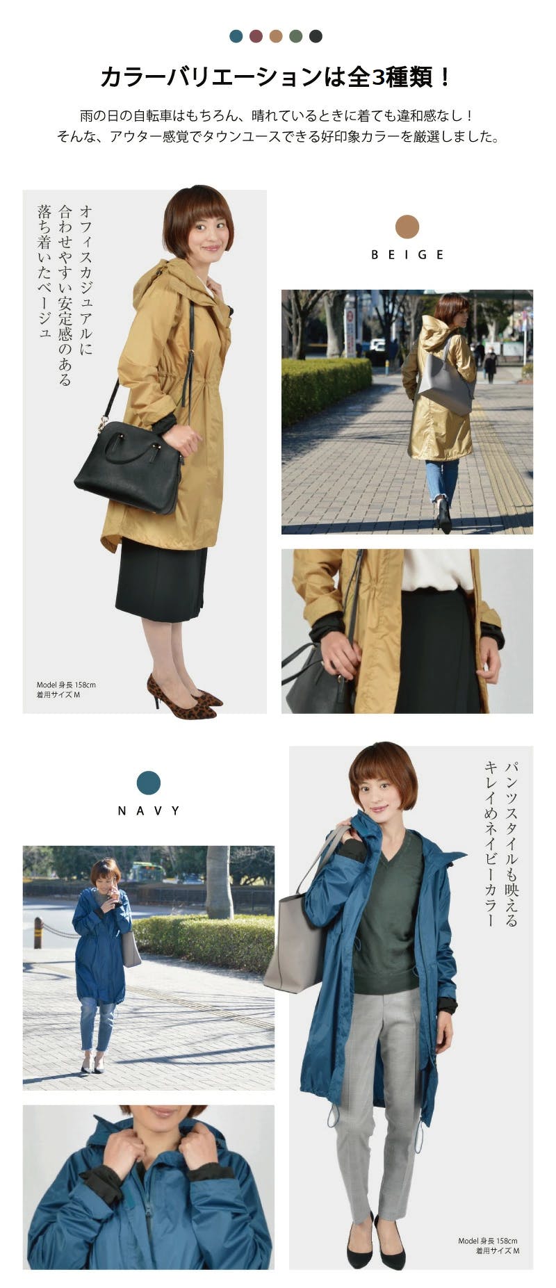 このようなお悩みから自転車でも足や顔が濡れない、そしておしゃれなレインコートの設計を始めました。