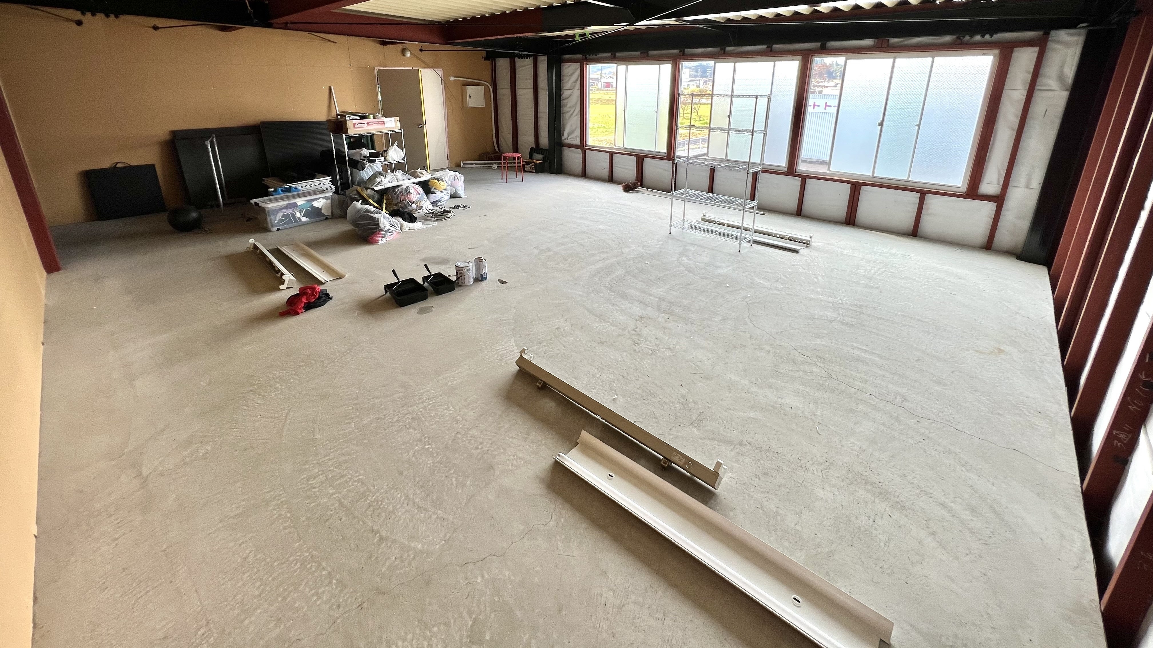 只今、ケージを搬入する予定の場所の片付けと自分で出来る所はやろうという事で営業時間の合間に塗装を開始しております。
