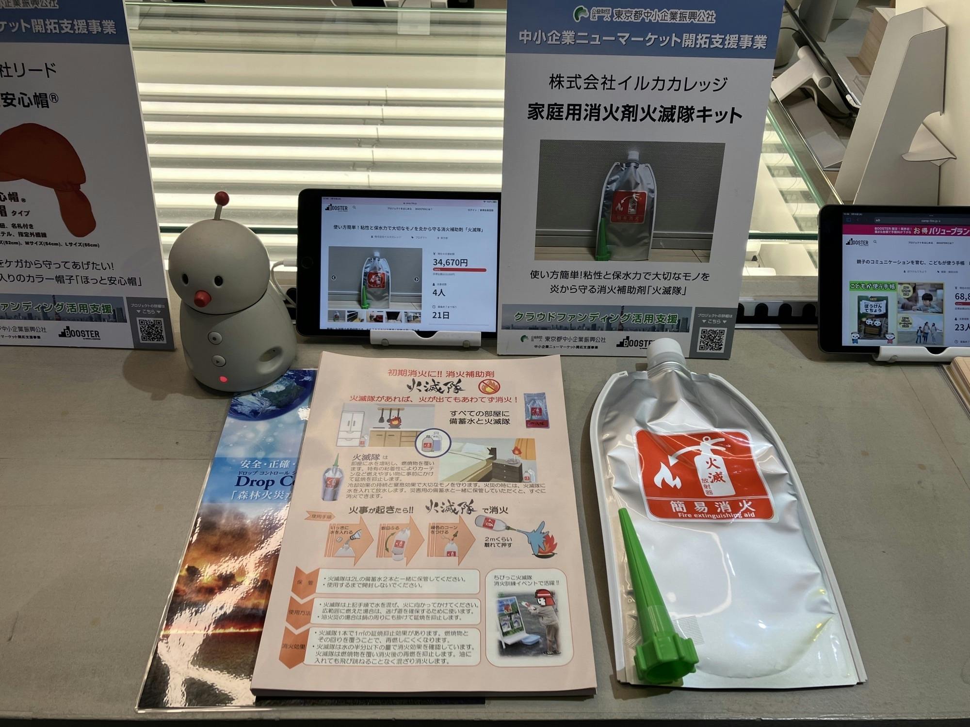 お年寄りから子供まで誰一人取り残されることのなく持って逃げれる消火補助剤として、「火滅隊」を東京都中小企業振興公社様の先進的防災技術実用化支援事業に採択いただき開発し、普及に取り組んでいます。