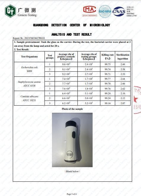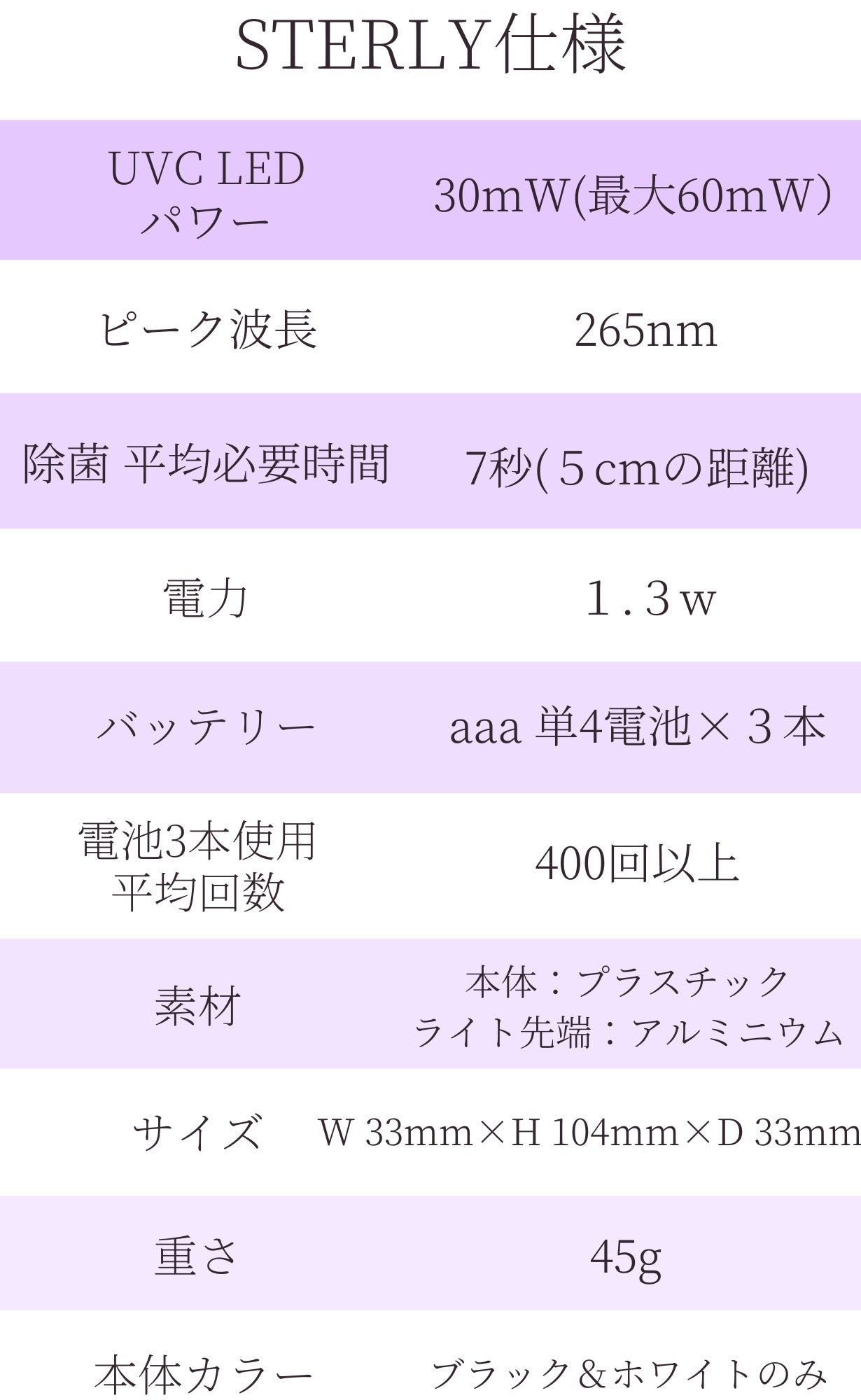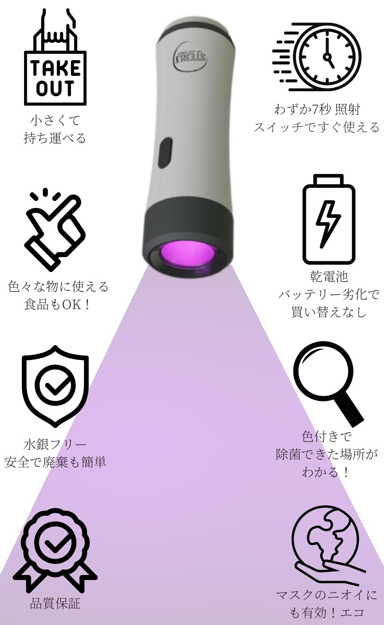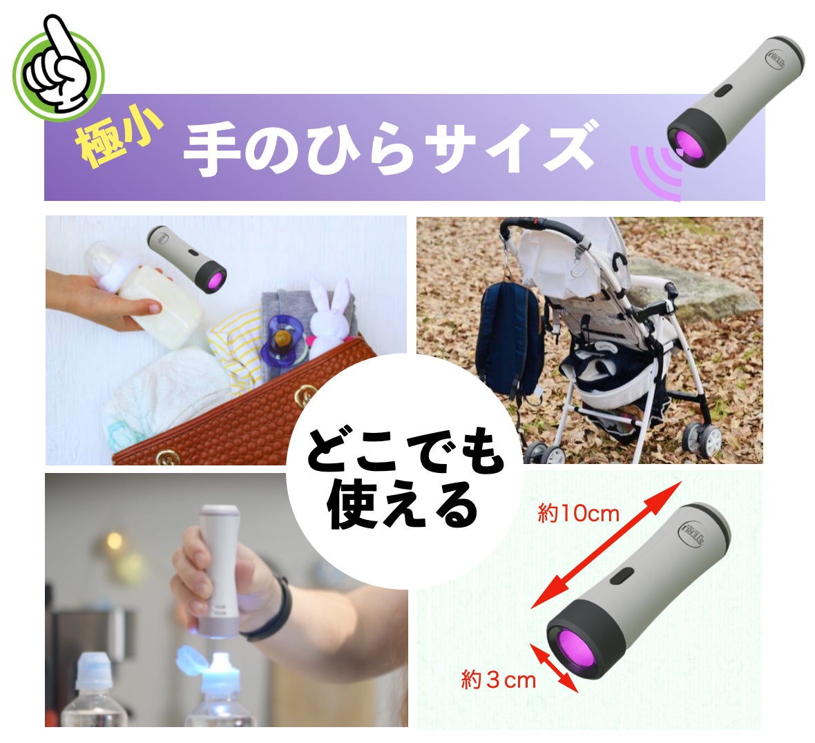 対象物から3センチ離して7秒~20秒で除菌効果があります
