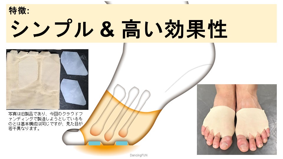 そこで、本クラウドファンディングで作ろうとしている金型で成形したシリコン・パッドを使って、ソールのない履物を作ったら、タイプ2の踊りにくさをなくすことができるし、「仮性イカ足」もなくせるはずです。