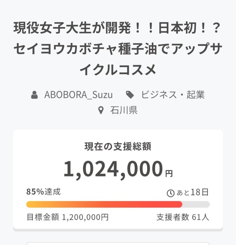 先日、支援総額100万円を越え目標達成まであと少しとなりました!