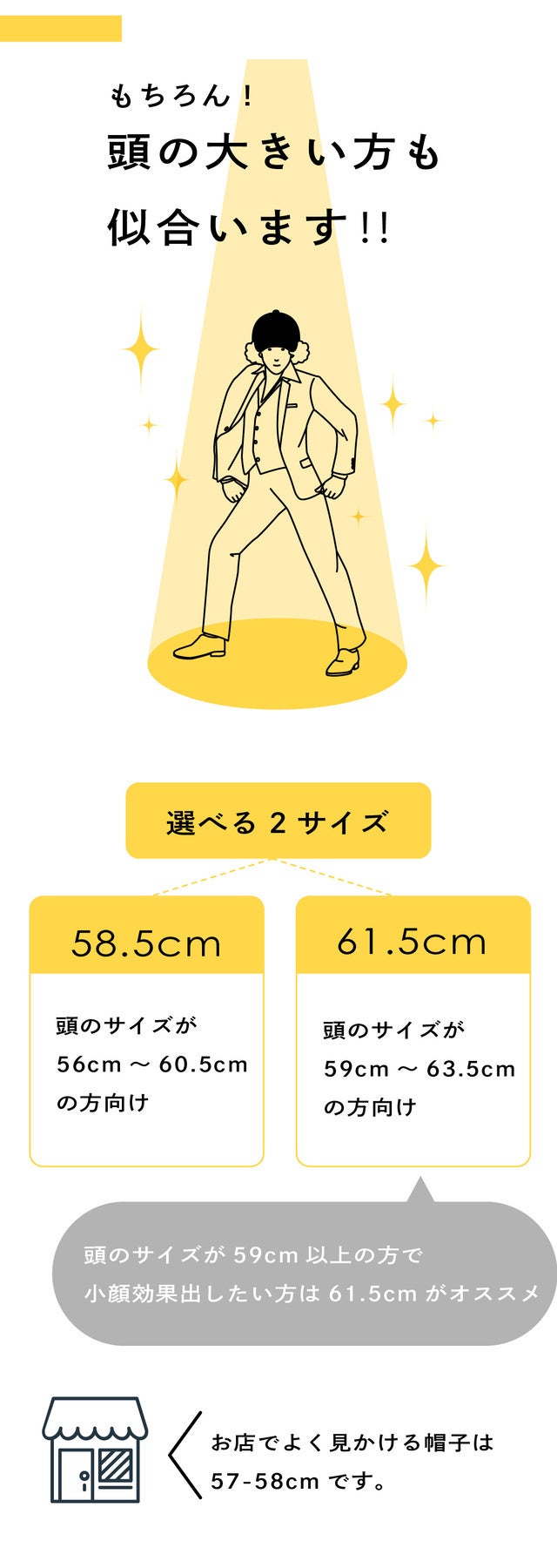 ■Mサイズ:58.5cm(頭サイズ56cm〜60.5cm向け)ツバの長さ:7.5cm深さ:13cm