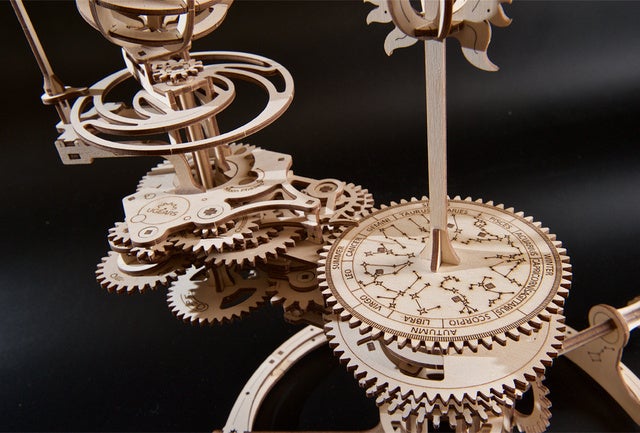 Ugearsの設計エンジニアは、地球と月の軌道周期を表現するにあたり「メカニカルテルリオン」にこの規模の木製模型で可能な限り正確に表現するために精巧なギアシステムを搭載しました。