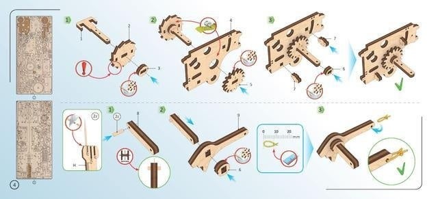 ユニークな設計技術を誇るUgearsは、上質な生産規格に基づいて製作しています。Ugearsの全モデルは環境にやさしい木で製作しており、高品質の天然合板にきっちりと切れ目が入っているため簡単に作成が可能です。 部品は押すことで簡単に合板から取り外すことができます。是非、本物の木の香りを感じながら組立てに没頭してみてください。