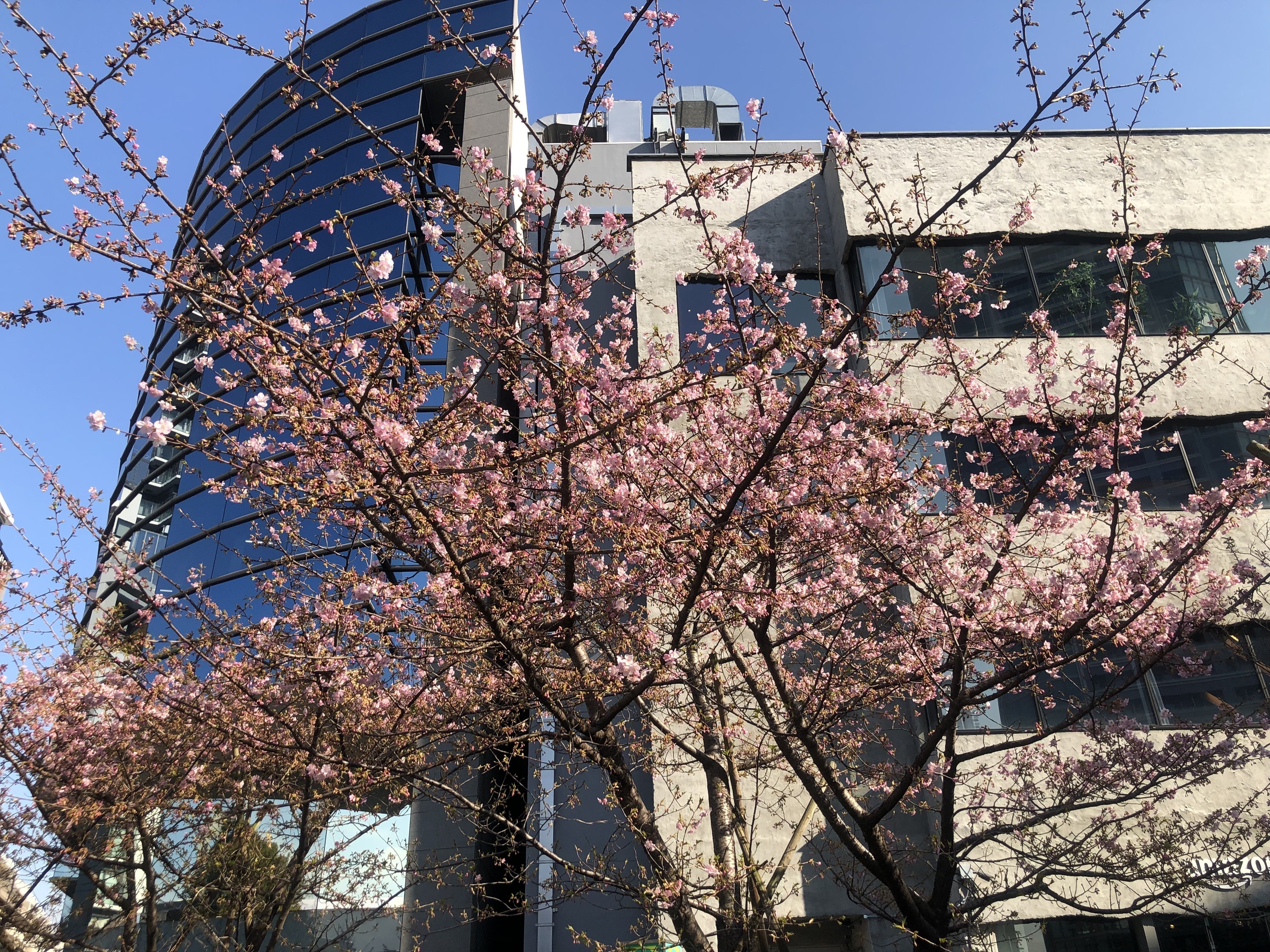 撮影場所では、早咲きの桜が綺麗に咲いていました♪皆さまのご支援一つ一つが芽吹いて、この桜みたいに綺麗に花開くことを願っています。